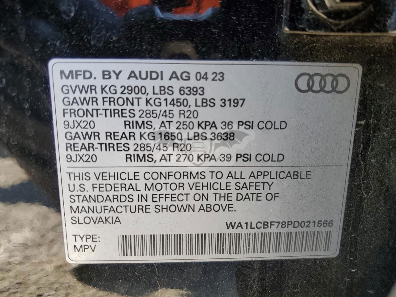 • VIN: WA1LCBF78PD021566