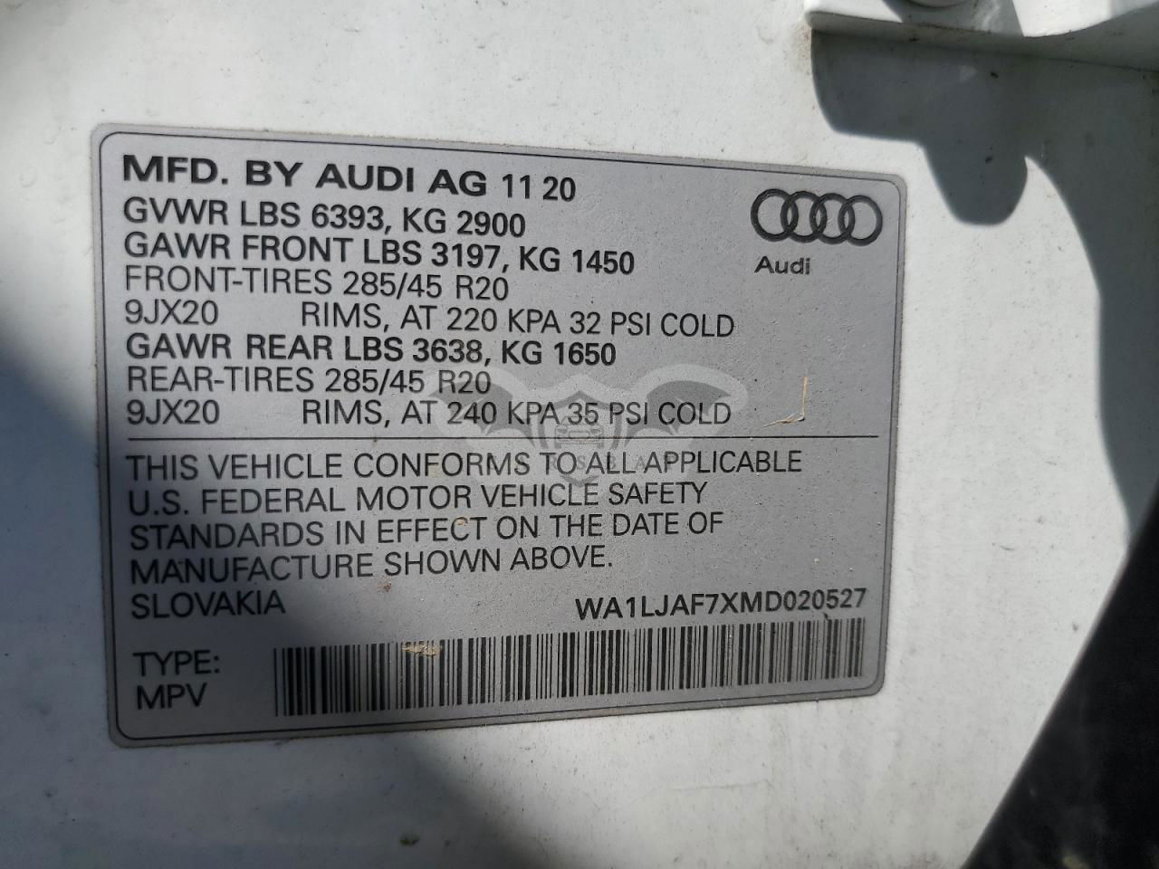 • VIN: WA1LJAF7XMD020527