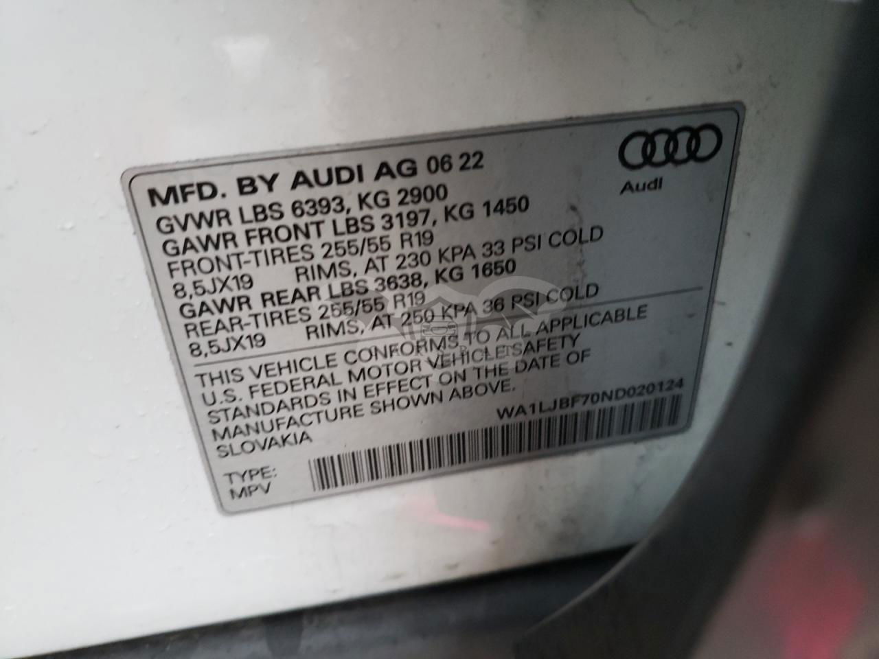 • VIN: WA1LJBF70ND020124