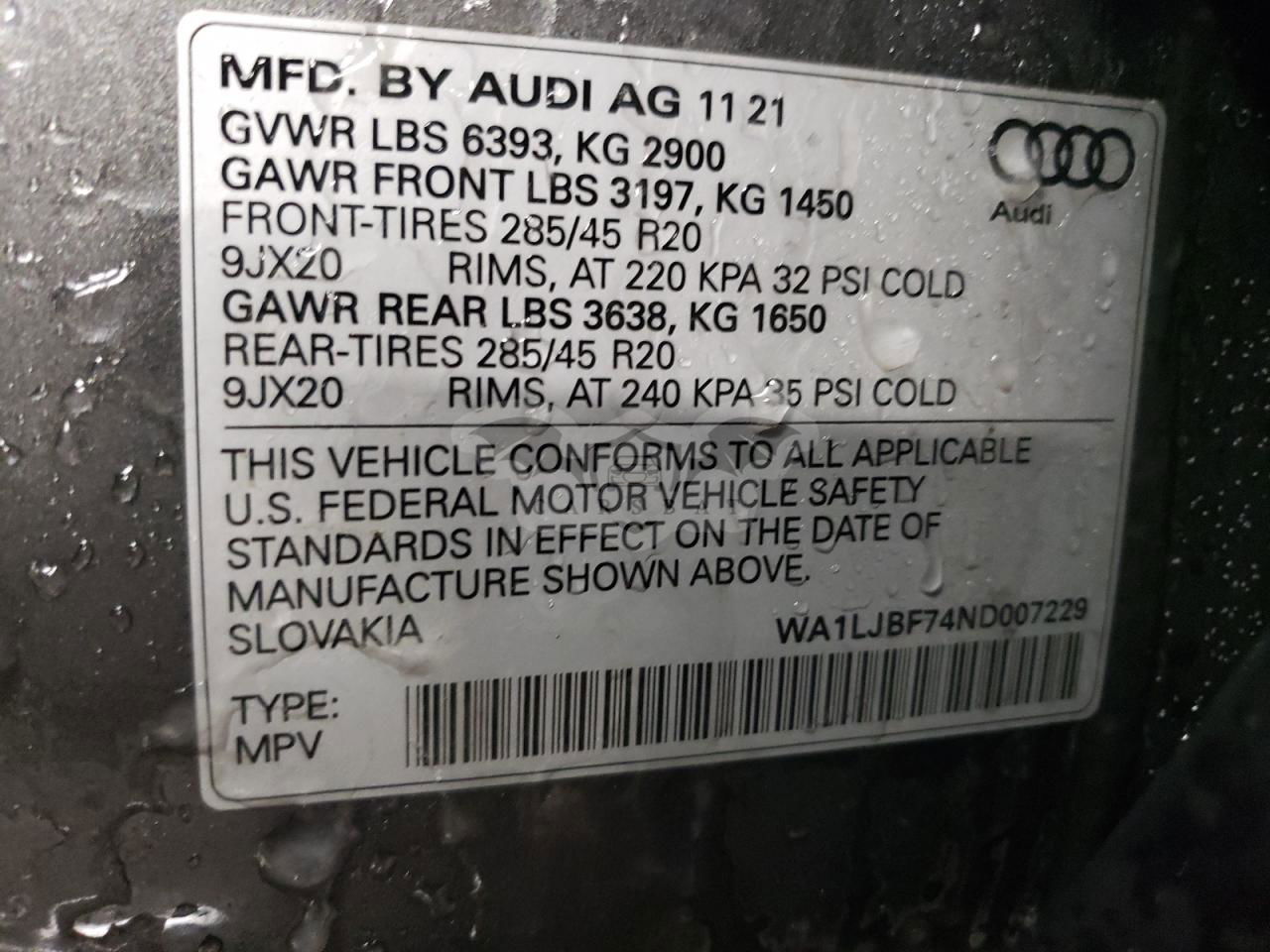 • VIN: WA1LJBF74ND007229