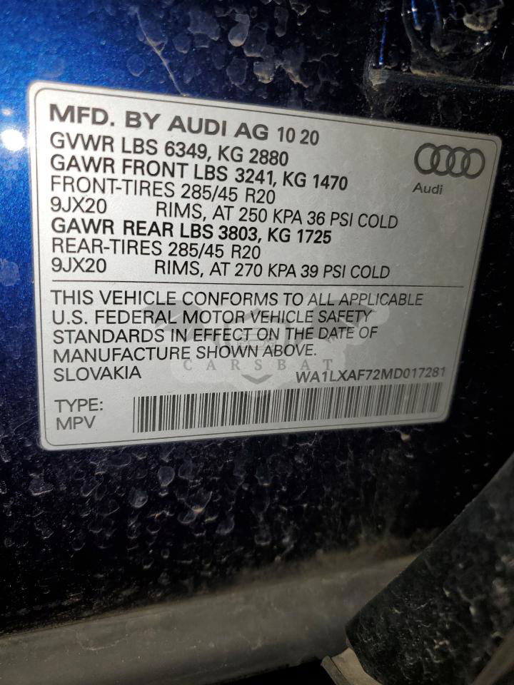 • VIN: WA1LXAF72MD017281
