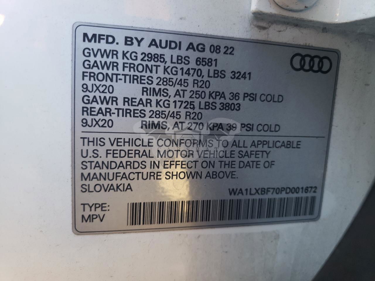 • VIN: WA1LXBF70PD001672