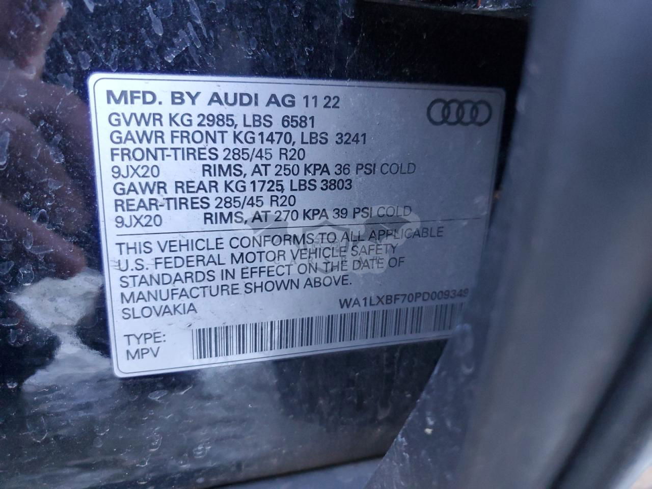 • VIN: WA1LXBF70PD009349