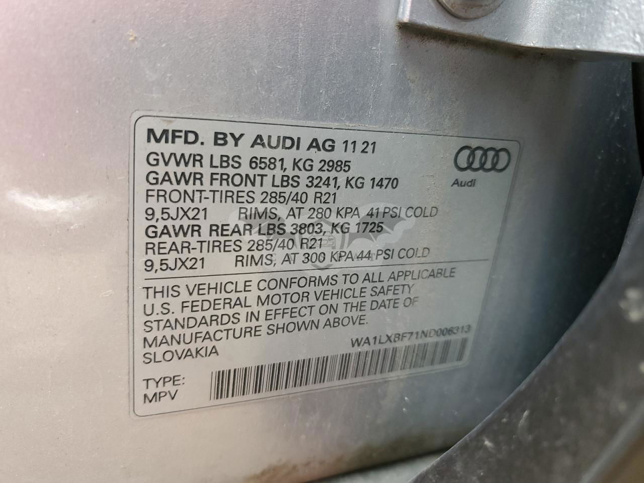• VIN: WA1LXBF71ND006313