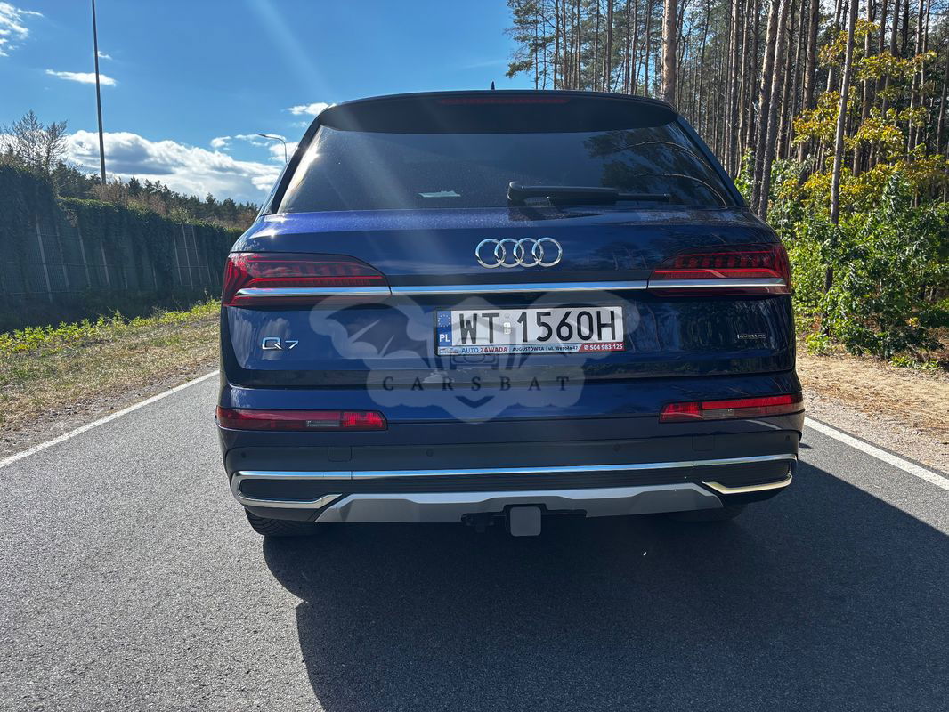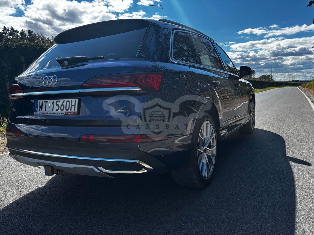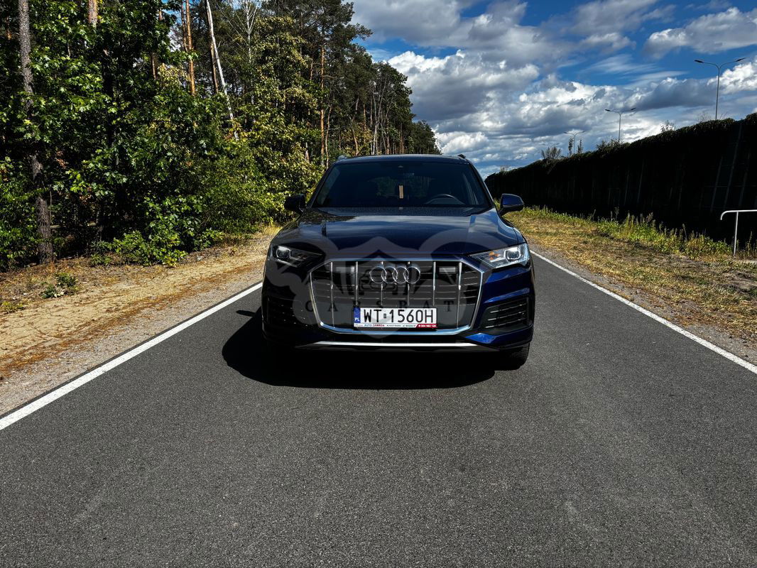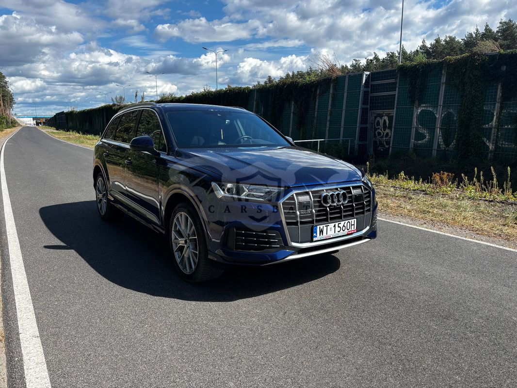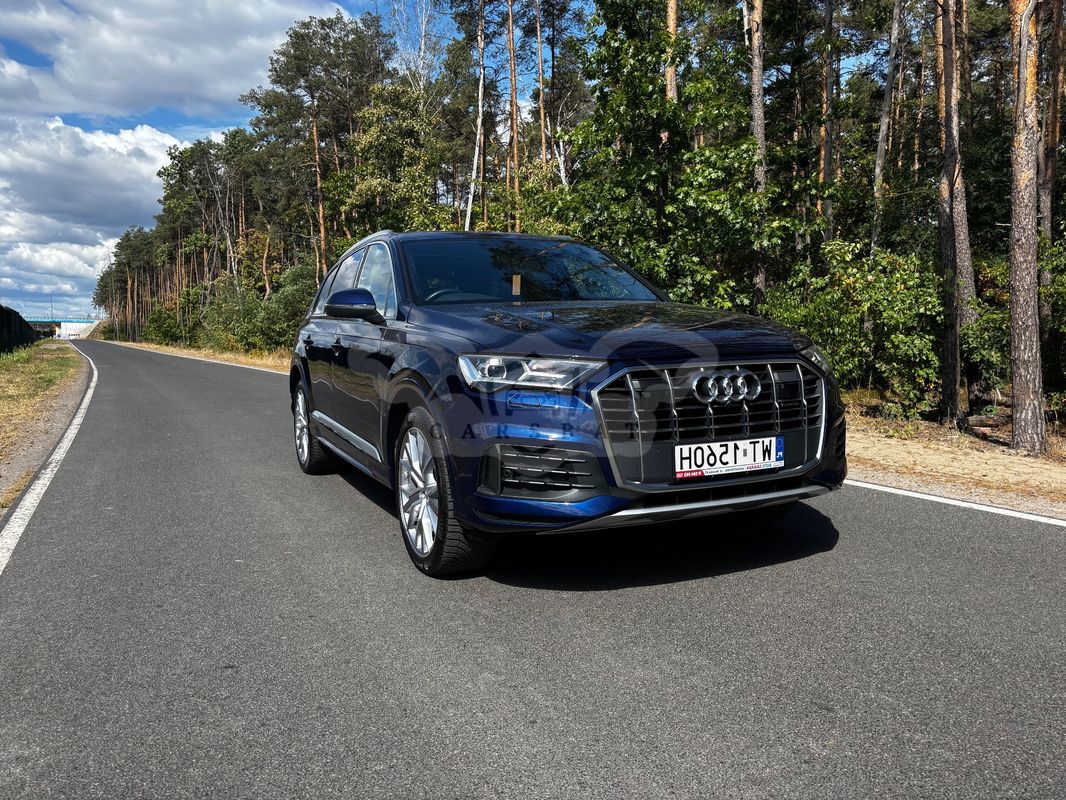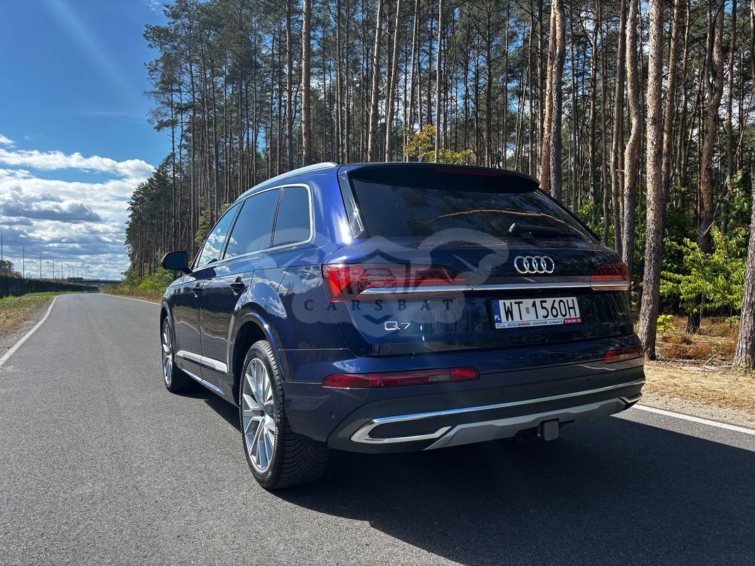Ciemnoniebieski Audi Q7 II 55 TFSI quattro tiptronic 2023 roku | Benzyna