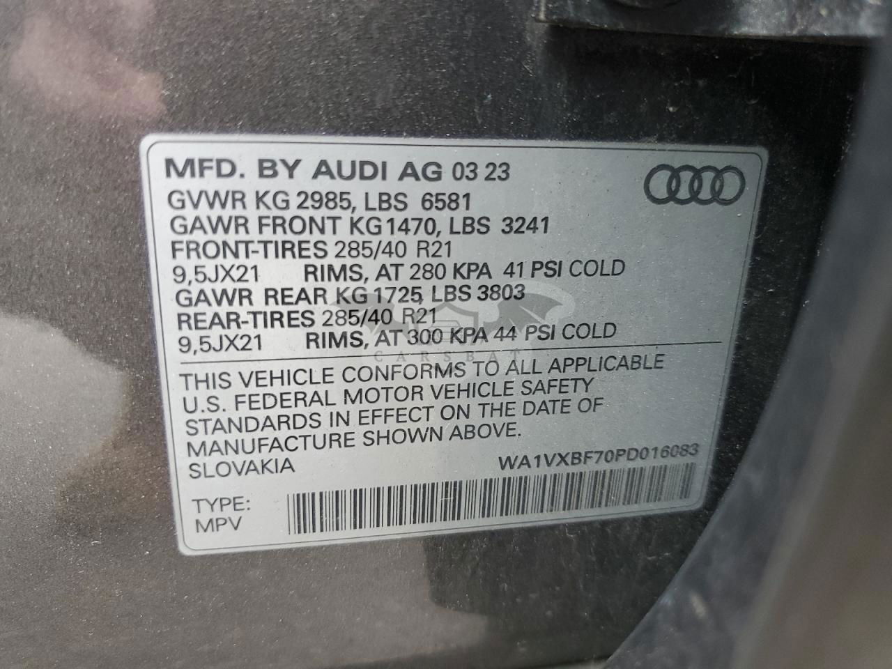 • VIN: WA1VXBF70PD016083