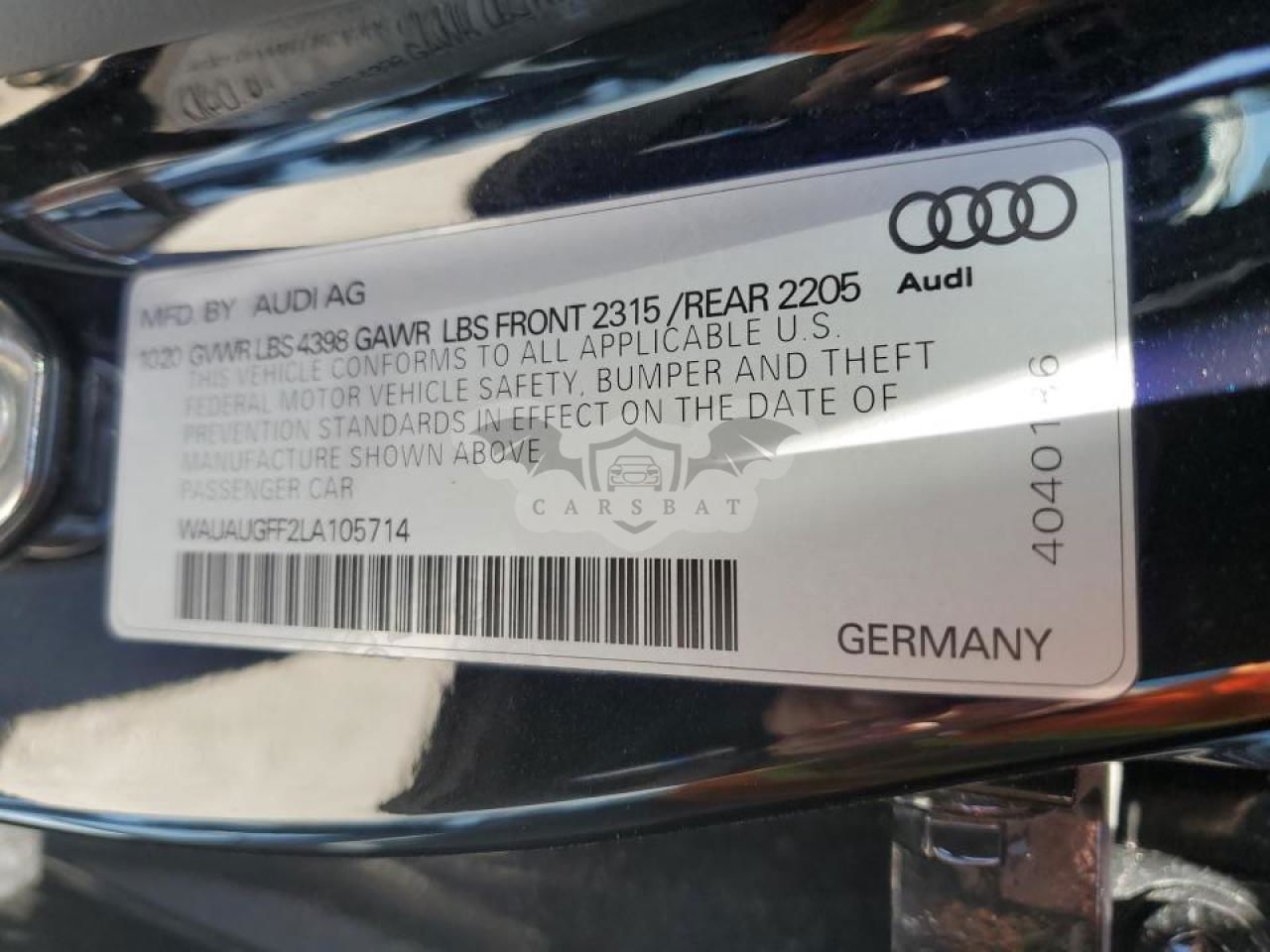 • VIN: WAUAUGFF2LA105714