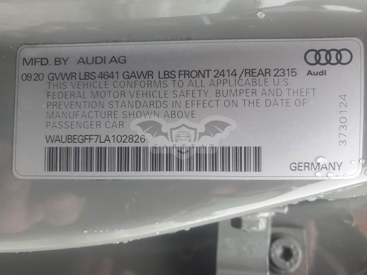 • VIN: WAUBEGFF7LA102826