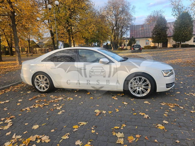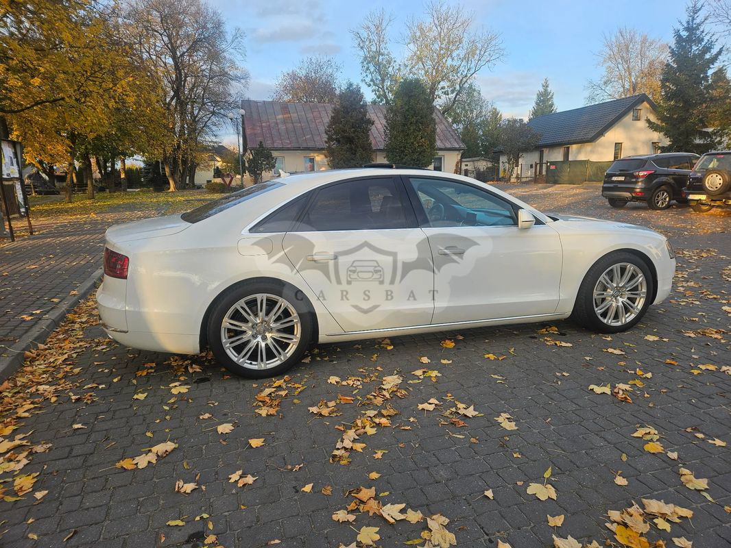 - Audi A8 D4 (pięcioosobowe), w brązowych skórach, z czarną skórą na kokpicie oraz wykończeniem wnętrza BLACK PIANO Jestem drugim właścicielem w Polsce. Autentyczny przebieg wraz z pełną historią serwisową (wydruki dostępne na miejscu). Audi jest moim drugim samochodem, nie tłuczonym na co dzień. W komplecie z autem otrzymujecie Państwo drugi komplet kół zimowych oraz komplet oryginalnych welurowych dywaników lub gumowych na zimę. Dodatkowo niedawno Audi otrzymało pięcioletnią powłokę ceramiczną. Sprzedaż na umowę kupna/sprzedaży (nie jestem handlarzem) Auto w bardzo bogatym wyposażeniu, postaram się wymienić najważniejsze/najfajniejsze z nich: - Reflektory FULL LED, - skrzynia biegów: automatyczna z łopatkami przy kierownicy, - napęd na cztery koła QUATTRO, - kamery 360 stopni wraz czujnikami parkowania, - fotele z masażem, grzane i wentylowane, - elektryczny, szklany szyberdach, - elektryczne regulacje foteli w wielu płaszczyznach wraz z pamięcią, - automatyczne dociąganie drzwi, - podgrzewana, skórzana i elektrycznie regulowana kierownica - klimatyzacja czterostrefowa, - wykończenie wnętrza BLACK PIANO, - deska rozdzielcza wykończona skórą, - szyberdach elektryczny, - pneumatycznie regulowana wysokość zawieszenia, - czujnik martwego pola BLIS, - nagłośnienie BOSE, - podświetlanie wnętrza Ambient LED, - obsługa klimatyzacji z panelu tylnego podłokietnika - fabrycznie przyciemniane szyby, a tylna z automatyczną roletą - możliwość regulacji charakterystyki zawieszenia Sport/Comfort/Indyvidual - podświetlane klamki, - automatyczne światła drogowe oraz wiele innych które są podstawą w autach tej klasy KONTAKT WYŁĄCZNIE TELEFONICZNY, nie odpowiadam na sms i WhatsApp. Sprzedaję wyłącznie z powodu zakupu auta w nowszym modelu.