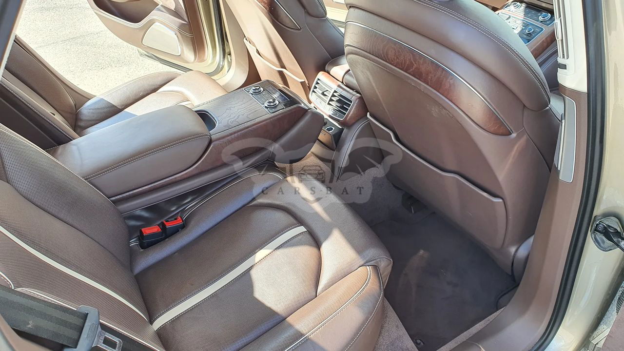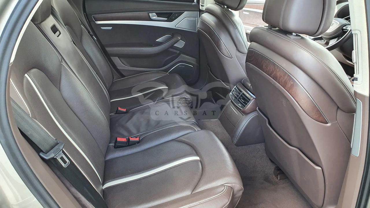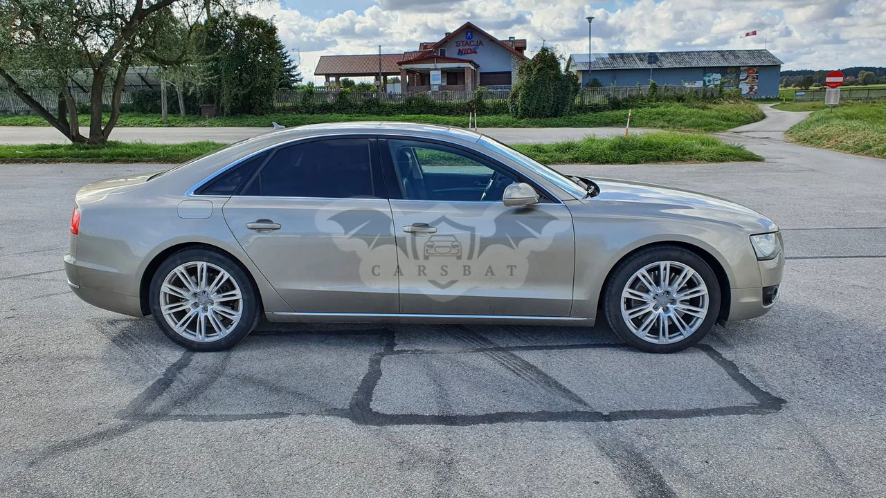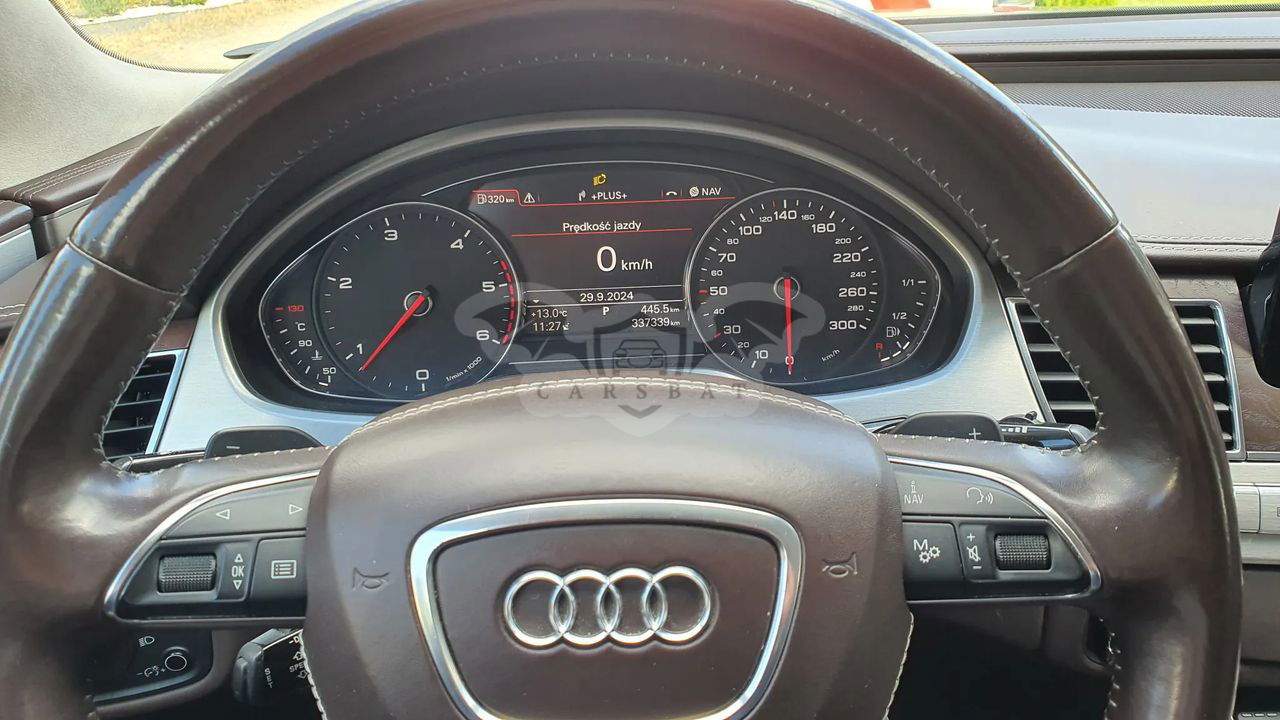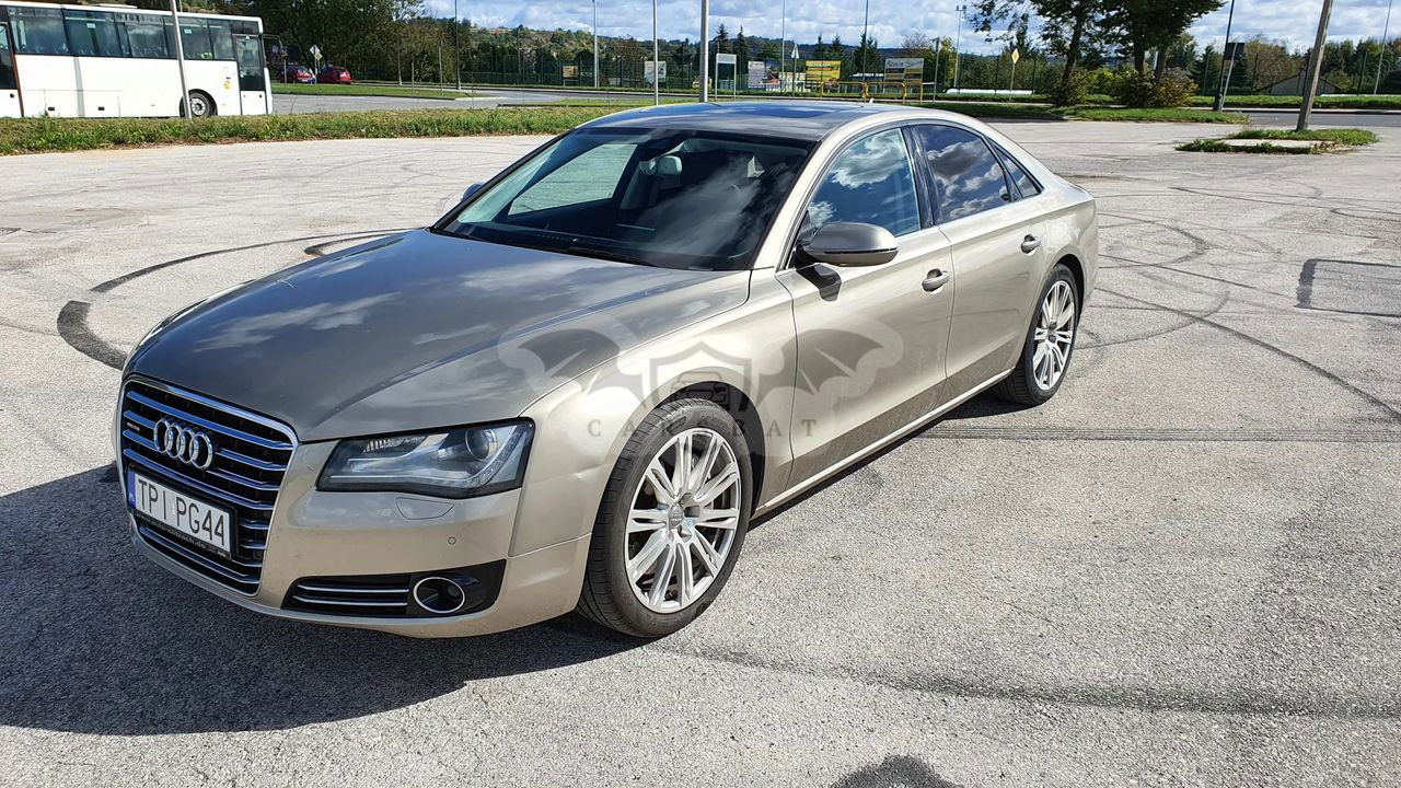 Audi A8 D4 Poj 4.2 TDI 350KM V8 Skrzynia automatyczna 8 - biegowa Napęd Quattro Przebieg 337 tys km Samochód bardzo bogato wyposażony, w najładniejszym zestawieniu z palety Audi: Kolor z najdroższej palety Impala beige metallic, drewno z serii exclusive, brązowe skóry, Samochód kupiony w Polskim salonie - 3 właściciel Samochód w dobrym stanie wizualnym jak i technicznym. Wnętrze samochodu w stanie bardzo dobrym - zadbane, czyste. Samochód bezwypadkowy. Bogate wyposażenie m.in - pneumatyczne zawieszenie - radary, utrzymanie pasa ruchu - aktywny tempomat - noktowizor - automatyczne światła , czujnik zmierzchu - masaże przednich foteli - przednie fotele w pełni elektryczne - podgrzewane i wentylowane - piękna brązowa skórzana tapicerka - piękne wykończenia w drewnie - orzech - el. roleta tylne i tylne boczne - el szyberdach - oświetlenie ambiente - czujniki parkowania przód tył - kamera cofania - nagłośnienie Bang & Olufsen - CD, DVD, Aux - nawigacja - telefon - bluetooth - wielofunkcyjna skórzana kierownica - czujniki martwego pola - klimatyzacja 4 strefowa - key less - dostęp i odpalanie samochodu bez kluczykowy - poziomo i pionowo regulowana kierownica - webasto - tiptronic - dociągi drzwi - pełnowymiarowe aluminiowe koło zapasowe - hak Wady; - mechanizm wyświetlacza MMI uszkodzony do naprawy - szkoda parkingowa - delikatnie zarysowany tylny zderzak Auto godne polecenia w tej cenie. Cena 59900zł do małej negocjacji. Silnik pracuje idealnie, ma moc i ciąg. itd. więcej informacji na telefon 60*******62 sześć zero dwa zero osiem pięć osiem sześć dwa