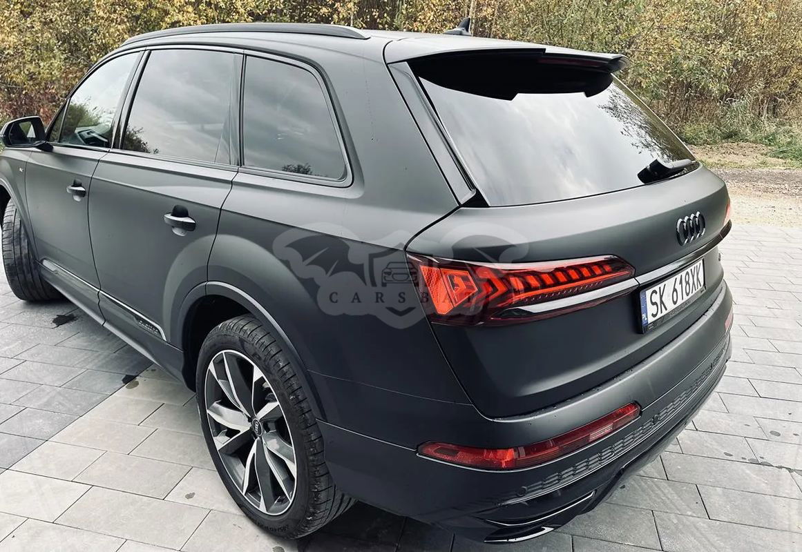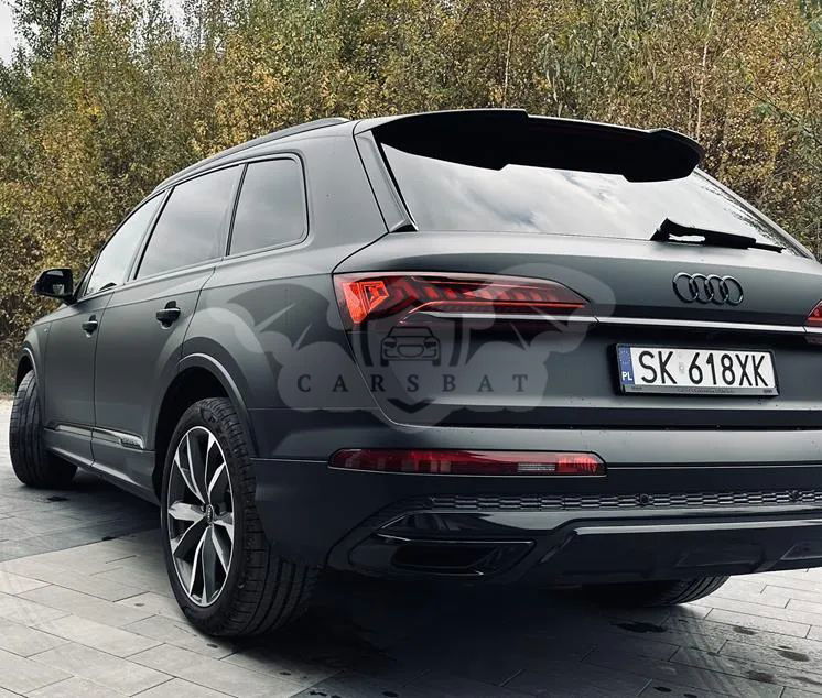 Audi Q7 S line 45 TDI quattro 170 kW (231 KM) tiptronic rocznik 2023 przebieg 78 000 Pozostało 38 rat po; 3780 zł brutto Wykup: 142 000 zł brutto Odstępne 60 000 zł brutto GAP opłacony do 05.03.2025 suma ubezpieczenia do 100 000 zł Polisa OC i AC do 05.03.2025 Samochód oklejony czarną folią - mat PPF Folia ochronna bezbarwna - wnętrze auta. We wrześniu wykonana ceramika na całym samochodzie W cenie opony zimowe i lenie Wnętrze: czarna Siedzenia: czarne Boki siedzeń: czarne Deska rozdzielcza: czarna/czarna Wykładzina: czarna Podsufitka: srebrna Moon Wyposażenie dodatkowe Cena Rata WSA Pakiet Comfort W cenie pakietu promocyjnego zawarte są następujące elementy wyposażenia dodatkowego: 4 - strefowa komfortowa klimatyzacja automatyczna Ogrzewanie przednich siedzeń Szyby z dodatkową powłoką zaciemniającą Wspomaganie zamykania drzwi, elektryczne Pakiet oświetlenia konturowego Ambiente, wielokolorowy Kluczyk komfortowy z autoalarmem i zabezpieczeniem przed odholowaniem 4A3 Ogrzewanie przednich siedzeń QQ2 Pakiet oświetlenia konturowego Ambiente, wielokolorowy WFB Pakiet Technology W cenie pakietu promocyjnego zawarte są następujące elementy wyposażenia dodatkowego: Pakiet systemów wspomagających kierowcę w ruchu pozamiejskim Audi phone box Wzmocnienie odbioru LTE System nagłaśniający Bang & Olufsen z dźwiękiem 3D (19 głośników) Audi parking system plus (przód i tył) z wizualizacją na ekranie MMI® PCC Pakiet systemów wspomagających w ruchu pozamiejskim PXC Reflektory Matrix LED z dynamicznymi kierunkowskazami 9VS System nagłaśniający Bang & Olufsen z dźwiękiem 3D (19 głośników) 0N5 Dynamiczny układ kierowniczy wszystkich kół z tylną osią skrętną 1BK adaptive air suspension 1D3 Hak holowniczy 1XW Kierownica 3-ramienna wielofunkcyjna plus obszyta skórą 2Z0 Brak oznaczenia modelu i mocy/technologii 42P Obręcze kół ze stopu metali lekkich 9,5Jx21", 5 - ramienne, ramiona w kształcie litery V szare, częściowo polerowane z oponami 285/40 R21. 3-letnie ubezpieczenie opon w cenie 4D3 Wentylacja przednich siedzeń 5KA Tylne siedzenia plus 6E6 Komfortowy podłokietnik z przodu 6NQ Podsufitka tkaninowa w kolorze czarnym 6XL Lusterka zewnętrzne elektrycznie regulowane, składane i ogrzewane, oba lusterka automatycznie przyciemniane, z funkcją pamięci ustawień 8X1 Układ zmywania reflektorów 9S9 Audi virtual cockpit plus EA6 Audi Extensive - Pakiet naprawczy 4 lata / 120 000 km GS5 Przyciski obsługowe w optyce czarnego szkła z haptycznym feedbackiem oraz rozszerzony pakiet elementów w optyce aluminium PAO Rezygnacja z Audi phone box PCM Pakiet systemów wspomagających w ruchu miejskim PIH Mocowanie fotelika dla dziecka ISOFIX do fotela pasażera 7P1 4-kierunkowe podparcie odcinka lędźwiowego kręgosłupa 7X2 Audi parking system plus (przód i tył) z wizualizacją na ekranie MMI® IU1 Audi smartphone interface 0TD Dywaniki z przodu i z tyłu KA2 Kamera cofania 5SL Lusterko zewnętrzne lewe, asferyczne 3L4 Przednie siedzenia z elektryczną regulacją i pamięcią ustawień dla fotela kierowcy QV3 Radio cyfrowe Kola: Obręcze kół ze stopu metali lekkich 8,5Jx19", 5 - ramienne, z ramionami w kształcie gwiazdy z opony 255/55 R19. 3-letnie ubezpieczenie opon w cenie.