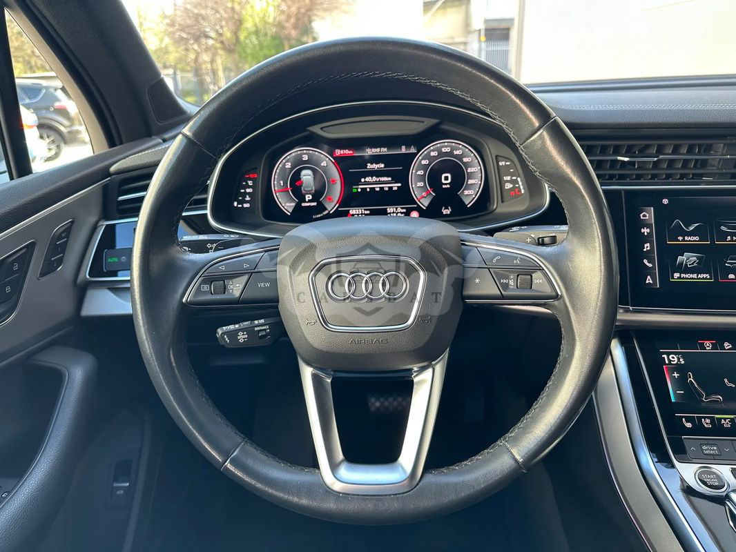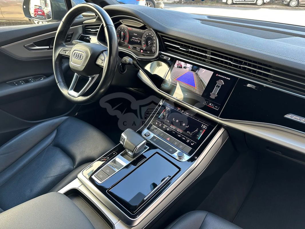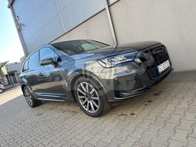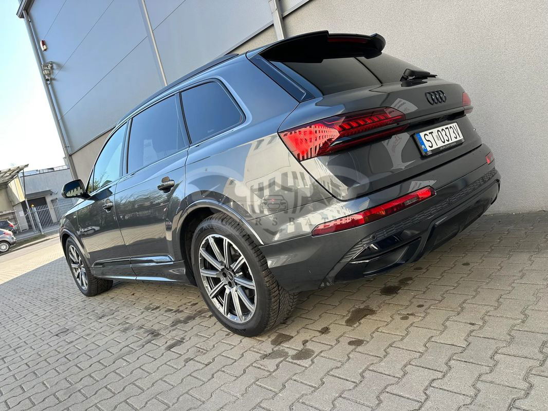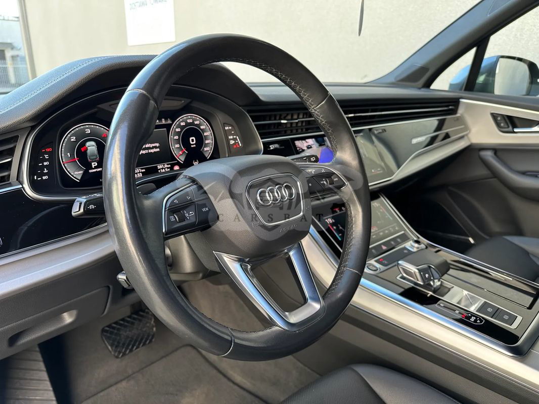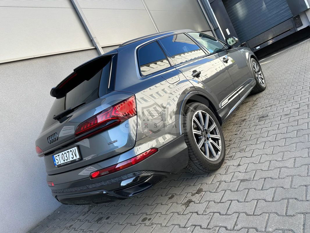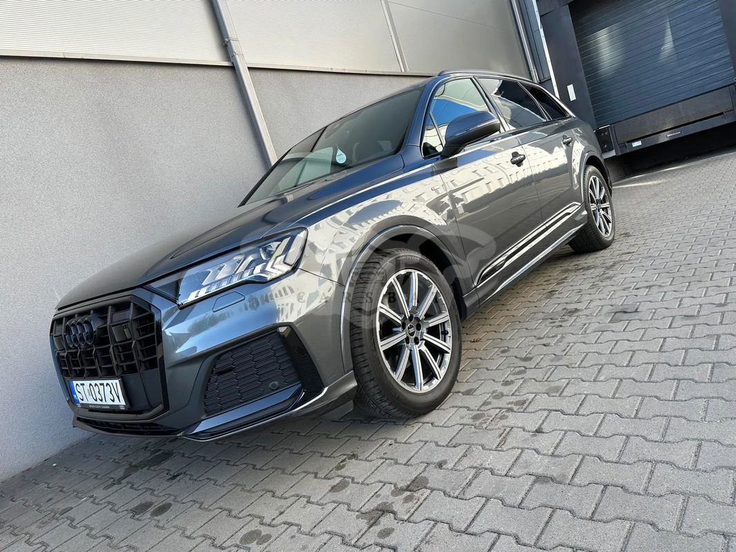 Witamy w CARS Team - Audi Q7 zakupione w polskim salonie - rok produkcji 2022 r. pierwsza rej. 04.10.2022 r. - Gwarancja producenta ważna do 04.10.2025 r. lub 90 000 km - I właściciel - bezwypadkowy - serwisowany w ASO - forma sprzedaży faktura VAT 23% (pojazd dostępny od ręki) - Zapraszamy do oględzin i zakupu!!! Wyposażenie Pakiet Comfort W cenie pakietu promocyjnego zawarte są następujące elementy wyposażenia dodatkowego: 4 - strefowa komfortowa klimatyzacja automatyczna Ogrzewanie przednich siedzeń Szyby z dodatkową powłoką zaciemniającą Wspomaganie zamykania drzwi, elektryczne Pakiet oświetlenia konturowego Ambiente, wielokolorowy Kluczyk komfortowy z autoalarmem i zabezpieczeniem przed odholowaniem Pakiet Technology W cenie pakietu promocyjnego zawarte są następujące elementy wyposażenia dodatkowego: Pakiet systemów wspomagających kierowcę w ruchu pozamiejskim Audi phone box Wzmocnienie odbioru LTE System nagłaśniający Bang & Olufsen z dźwiękiem 3D (19 głośników) Audi parking system plus (przód i tył) z wizualizacją na ekranie MMI® Reflektory Matrix LED z dynamicznymi kierunkowskazami. Kierownica 3-ramienna wielofunkcyjna plus, obszyta skórą, ogrzewana Hak holowniczy Wentylacja przednich siedzeń Pakiet "Czerń" wraz z pierścieniami Audi w kolorze czarnym Tylne siedzenia plus Podsufitka tkaninowa w kolorze czarnym