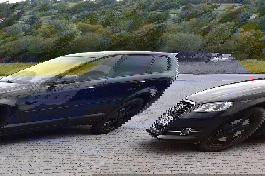 Ciemnoniebieski Audi A3 8P 2.0 TDI Sportback DPF quattro S line Sportpaket 2010 roku | Diesel