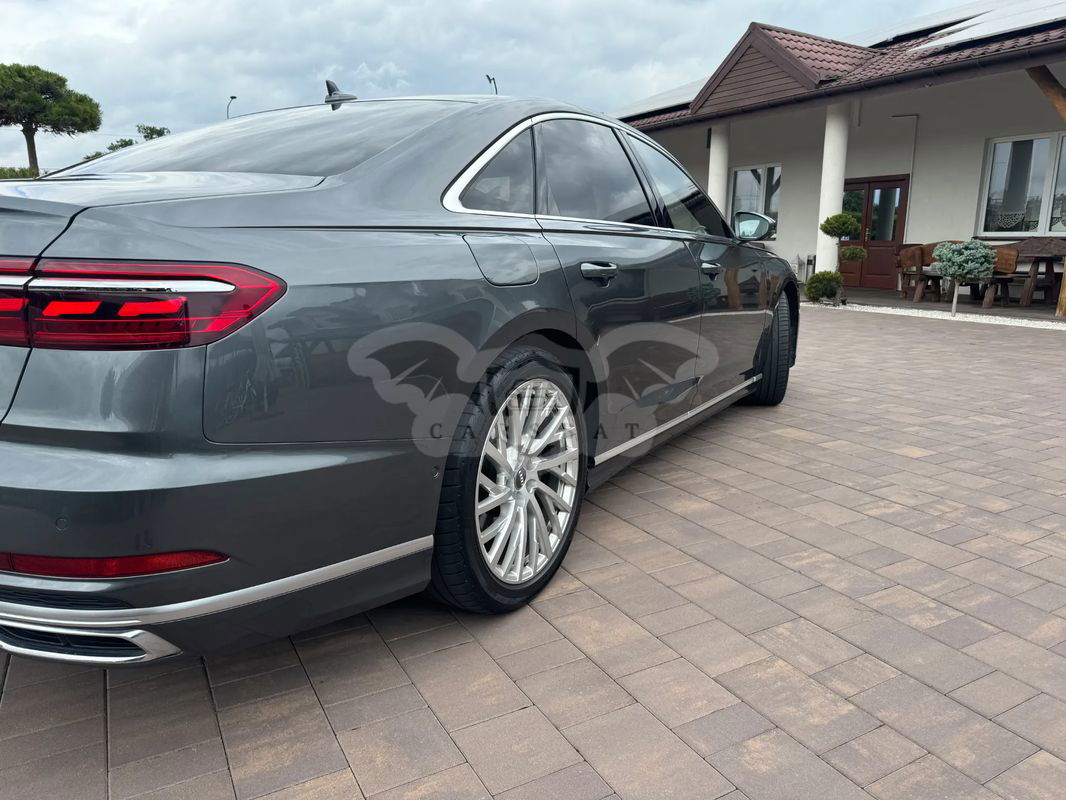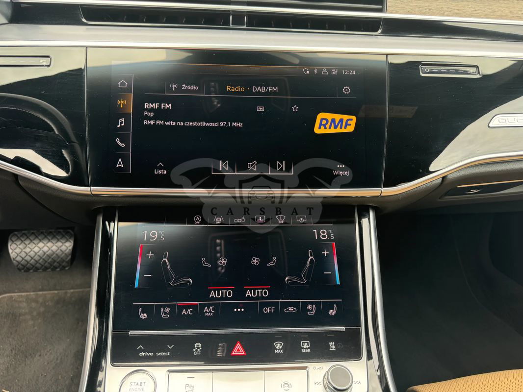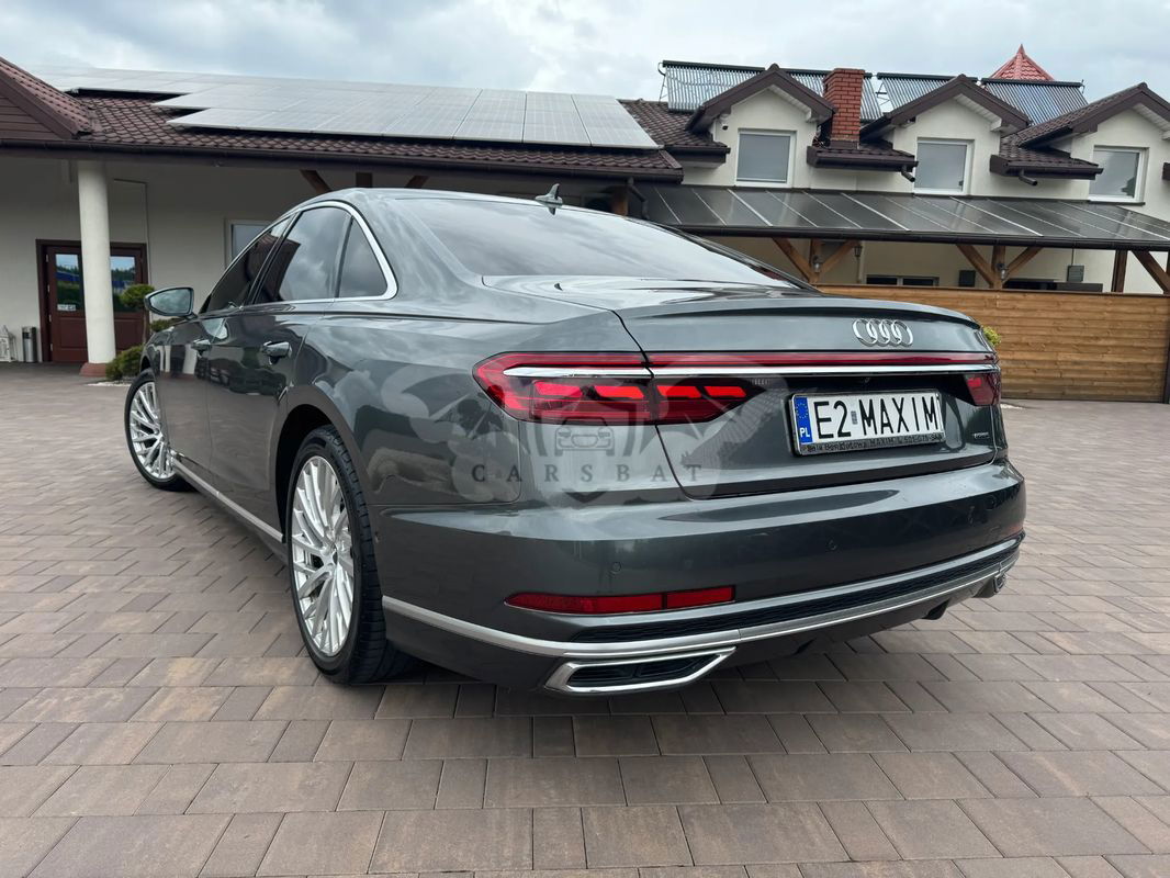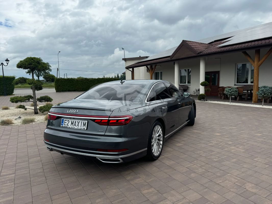 Na sprzedaż oferuję eleganckie Audi A8 z 2018 roku, w wersji bogato wyposażonej. Auto wyróżnia się wyjątkową jakością wykonania, nowoczesnymi technologiami oraz komfortem, który zadowoli nawet najbardziej wymagających kierowców. Dzięki przestronnej kabinie i zaawansowanym systemom wspomagającym jazdę, podróże tym samochodem to czysta przyjemność. Audi A8 to połączenie luksusu, wydajności i prestiżu, idealne dla osób ceniących wygodę oraz najwyższą jakość. Cesja leasingu Odstępne 120000 netto 10 rat po 2351 netto Wykup 12601 netto Wyposażenie dodatkowe -Asystent jazdy nocnej -Fotele przednie i tylne z funkcją masażu i wentylacji -Fotele tylne regulowane elektrycznie z wielofunkcyjną konsolą środkową -Kamery ułatwiające parkowanie 360 -Lampy przednie HD Matrix LED ze światłami laserowymi + dynamiczne kierunkowskazy -Lampy tylne w technologii OLED -Asystent świateł drogowych - funkcja automatycznego włączania/wyłączania świateł drogowych -Tempomat aktywny regulujący odstęp od auta poprzedzającego -Webasto -Wyświetlacz Head-Up -Audi Virtual Cockpit - wyświetlacz cyfrowy kokpitu kierowcy -Audi pre sense basic - system wspomagający bezpieczeństwo kierowcy i pasażerów -Audi parking system plus - czujnik parkowania przód i tył -Audi Music Intefrace - gniazdo do podłączenia urządzeń zewnętrznych -Audi lane assist - ostrzeżenie przed niezamierzoną zmianą pasa ruchu -System rozpoznawania znaków drogowych -Fotele konturowe z funkcją pamięci ustawień/el. regulacją/pneumatycznym podparciem odc. lędźwiowego -Fotele przednie oraz skrajne siedzenia tylne - ogrzewane -Lusterka boczne reg./skł. el., ogrzewane, z pamięcią -Lusterka boczne w kolorze nadwozia -Szyby tylne przyciemnione -Ambientowe oświetlanie wnętrza LED -Rolety przeciwsłoneczne elektryczne - szyba tylna oraz szyby boczne -Elektryczne wspomaganie zamykania drzwi przód/tył -Felgi aluminiowe 20 -Automatyczne otwieranie pokrywy bagażnika -Nawigacja -Radio MMI plus -Kierownica wielofunkcyjna, skórzana -Złącze Bluetooth -Koło zapasowe -Zestaw narzędzi z podnośnikiem -Zamek centralny z pilotem -Wskaźnik kontroli ciśnienia w oponach