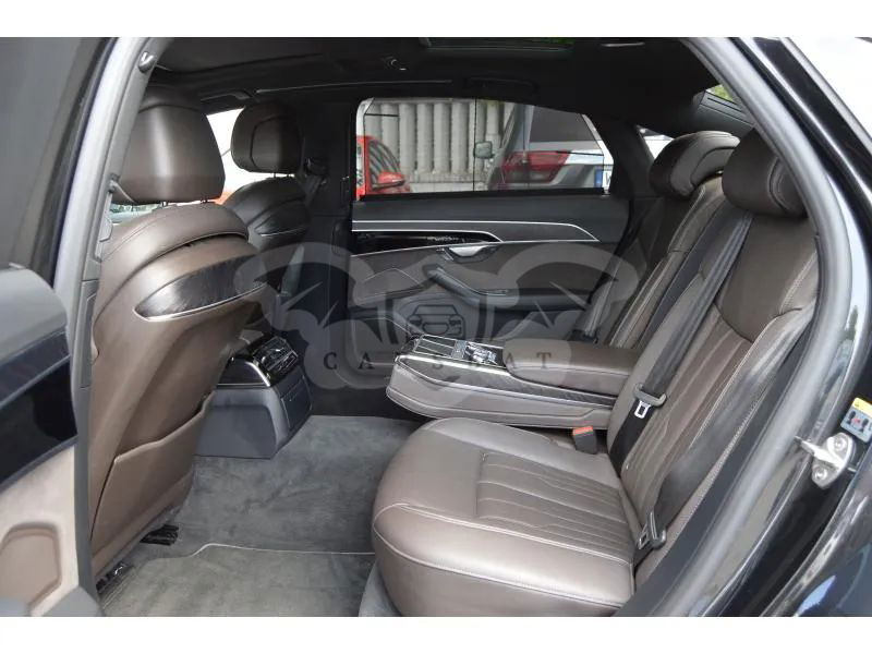 Szary Audi A8 D5 L 55 TFSI mHEV Quattro Tiptr 2018 roku | Hybrydowy