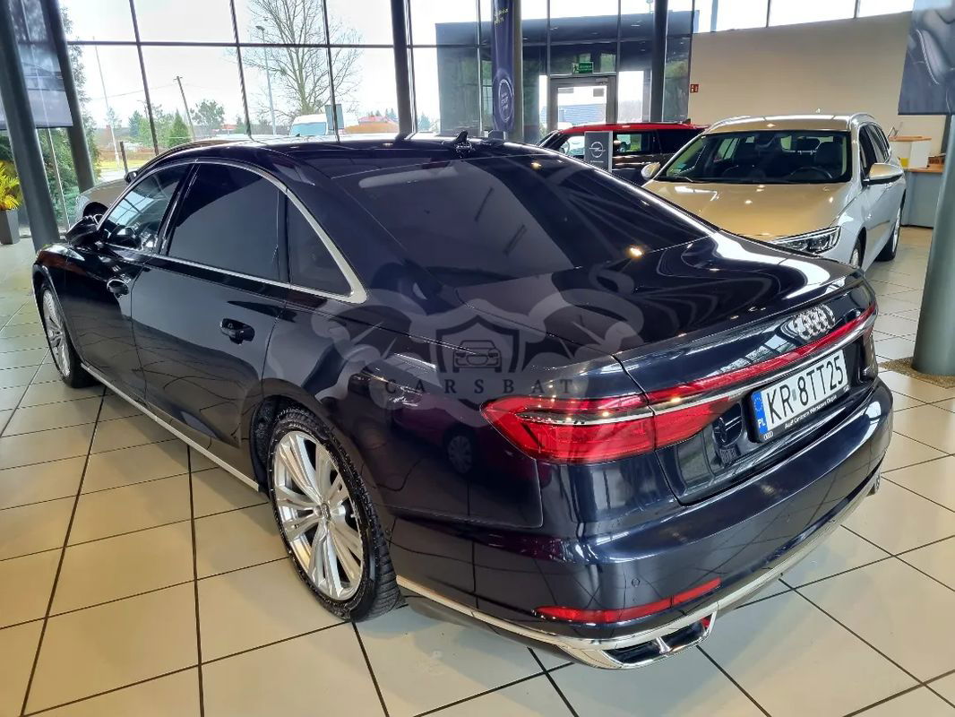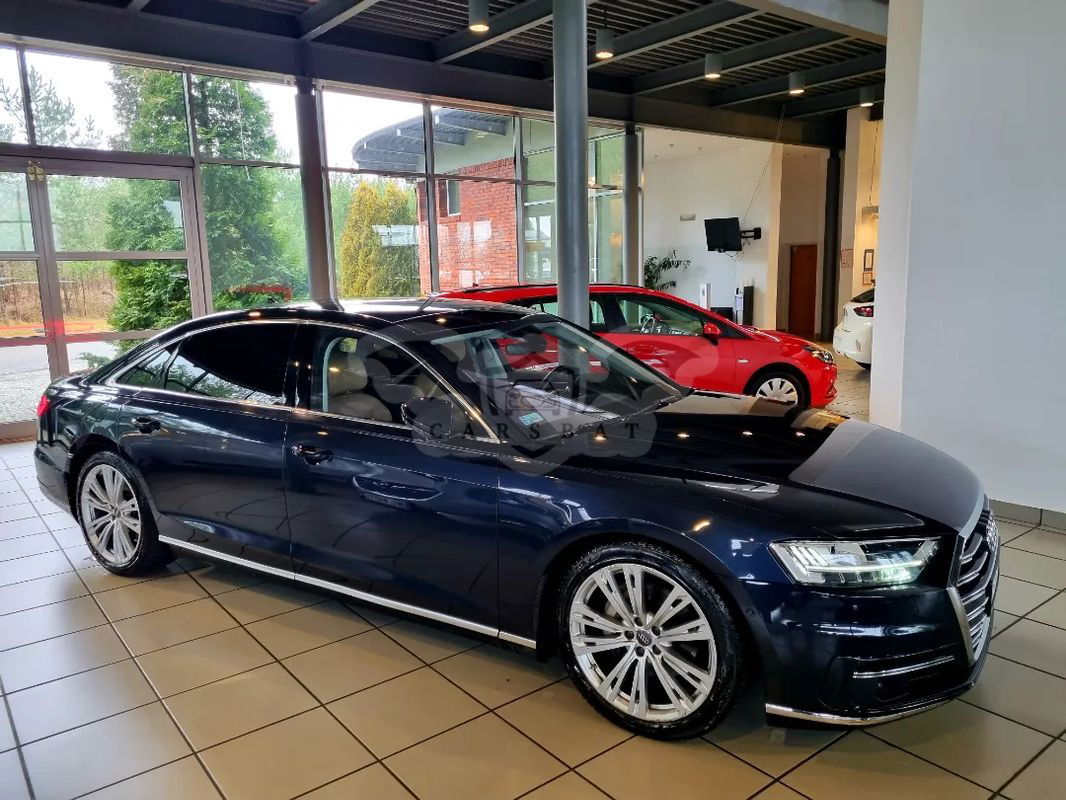 Oferta autoryzowanego dealera samochodów nowych Dodge, RAM oraz Suzuki Audi A8L 50TDI quattro samochód serwisowany, 1 właściciel w kraju Bardzo zadbany, utrzymany w bardzo dobrym stanie technicznym i wizualnym Silnik o mocy 286KM doskonale współgra z napędem na 4 koła i automatyczną 8-biegową przekładnią Audi jest bardzo bogato wyposażone, posiada m.in : podgrzewane i wentylowane przednie i tylne fotele z funkcją masażu pamięć ustawień foteli przednich i tylnych skórzaną tapicerkę elektrycznie regulowaną tylną kanapę zawieszenie pneumatyczne dociągi drzwi dach panoramiczny felgi aluminiowe 20" nawigacje GPS Head-Up Display tempomat aktywny asystenta pasa ruchu asystenta skrzyżowań asystenta parkowania czujniki parkowania tył i przód kamerę parkowania tyłem reflektory MATRIX z asystentem świateł drogowych tylne światła LED MMI Plus z rozszerzoną optyką Bang & Olufsen Sound System ogrzewanie postojowe WEBASTO szyby termoizolacyjne gniazdo 230V dla tylnego rzędu tylna oś skrętna Na miejscu pomagamy w uzyskaniu kredytu lub leasingu na preferencyjnych warunkach