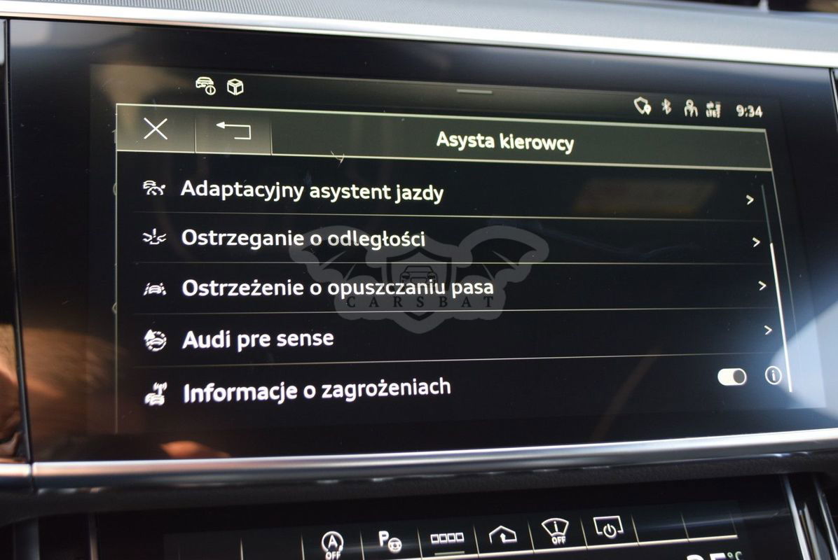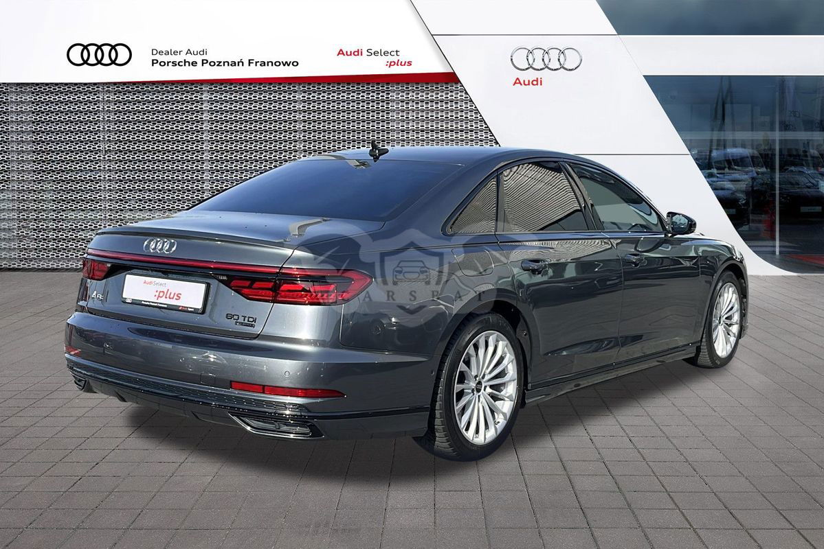PORSCHE INTER AUTO POLSKA (Porsche Poznań Franowo), Autoryzowany Dealer Marki Audi, prezentuje ofertę samochodu używanego. Audi A8 60 TDI Quattro Tiptronic 435 KM Ponadto zapytaj naszych Doradców o: • pozostawienie pojazdu w rozliczeniu • przedłużoną gwarancję producenta na samochody • korzystne pakiety serwisowe dostępne dla samochodów używanych • dedykowane finansowanie z niskimi ratami Wyposażenie dodatkowe: - Pakiet Alcantara w kolorze czarnym (Podsufitka z Alcantary (czarna), Osłony przeciwsłoneczne Alcantara (czarne), Górna część poszycia słupków Alcantara (czarna)) - Pakiet jakości powietrza (Jonizator powietrza, System aromatyzowania i wizualizacji jakości powietrza na wyświetlaczu MMI) - Asystent parkowania - system umożliwiający parkowanie bez udziału kierowcy - Audi Connect key - system kluczyka bezdotykowego dla smartfona - Audi Music Interface dla pasażerów z tyłu - gniazdo do podłączenia urządzeń zewnętrznych - Audi smartphone Interface - Dynamiczny układ kierowniczy wszystkich kół z tylną osią skrętną - Fotele przednie ogrzewane - Fotele przednie sportowe - Fotele przednie z funkcją masażu i wentylacji, pakiet - Home link - pilot otwierania bramy garażowej - Kamery ułatwiające parkowanie 360 (panormaiczne) - Kierownica 4-ramienna wielofunkcyjna, z funkcją zmiany przełożeń, skórzana - Klimatyzacja automatyczna, komfortowa - 4 strefowa - Lampy przednie HD Matrix LED ze światłami laserowymi + dynamiczne kierunkowskazy oraz spryskiwacze - Lampy tylne w technologii OLED - Lusterka boczne w kolorze czarnym z połyskiem - Ogrzewanie postojowe - Pakiet optyczny Czerń - Pakiet optyczny Sport exteriuer - Pakiet oświetlenia wnętrza - konturowe/ambiente (6 profili kolorystycznych/do wyboru 30 barw) - Sportowy mechanizm różnicowy - System nagłośnienia Audi Premium Sound System z dźwiękiem 3D (Bang & Olufsen) - 17 głośników - Szyby dźwiękoszczelne z izolacją termiczną - Wyświetlacz Head-Up - Aktywny Tempomat - Asystent Pasa ruchu - Kolumna kierownicy regulowana elektrycznie W naszym salonie zapewniamy również kompleksową obsługę w zakresie finansowania zakupu samochodu i ubezpieczeń komunikacyjnych. Ponadto oferujemy usługę odkupu samochodów używanych. Skupujemy samochody używane wszystkich klas, segmentów, marek i modeli. Transakcji odkupu dokonujemy z osobami fizycznymi, firmami i instytucjami oraz profesjonalistami branży motoryzacyjnej.