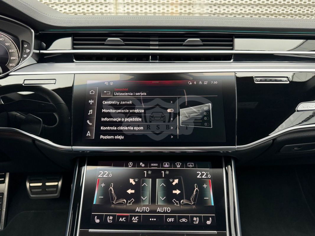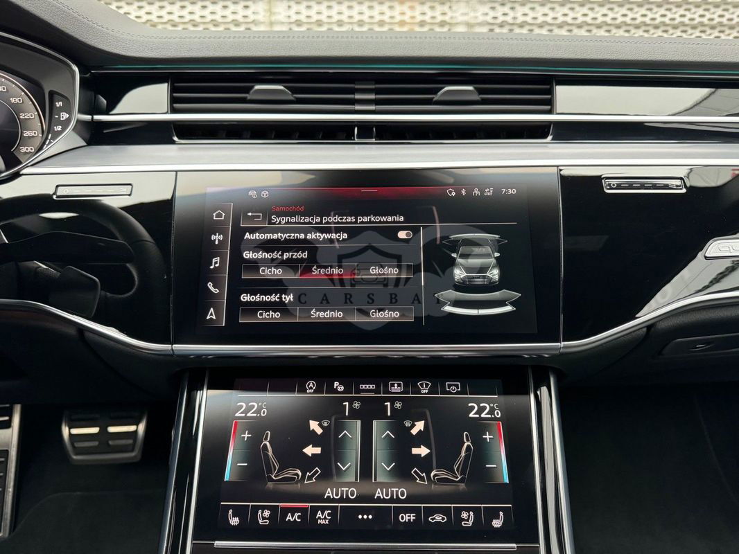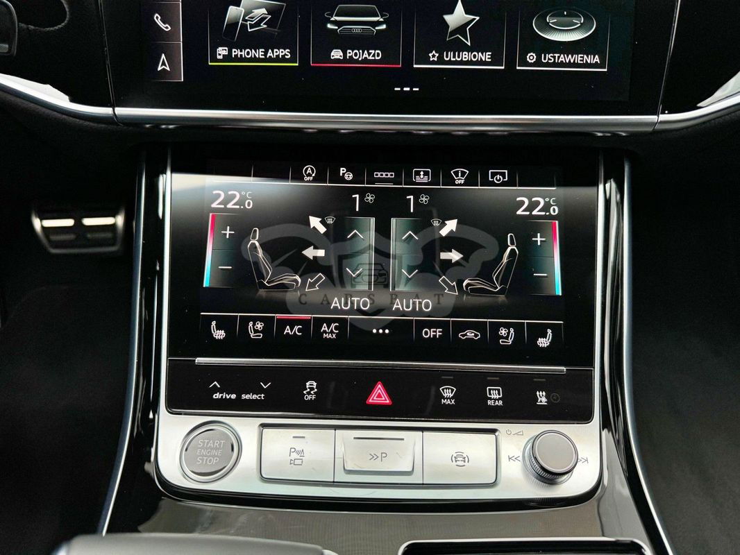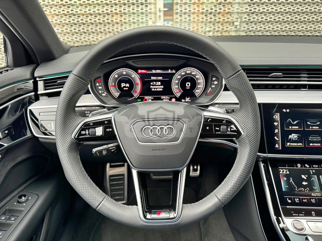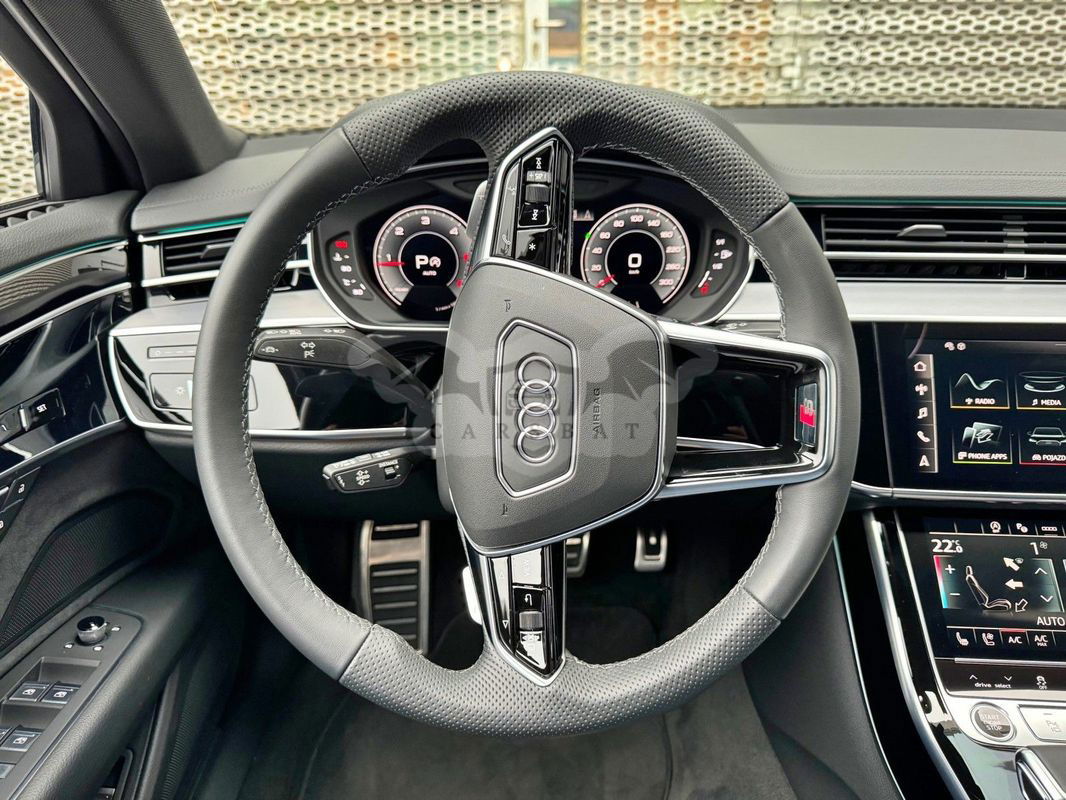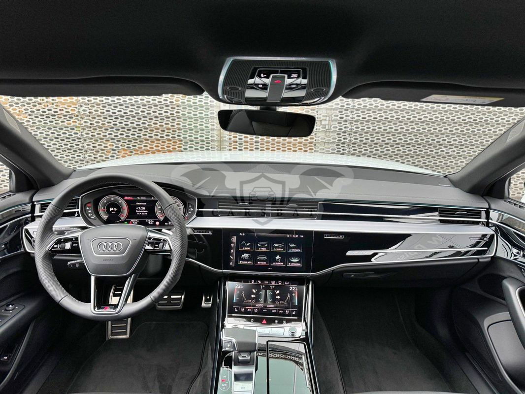 Gwarancja fabryczna producenta do 02.04.2028 / 100 000km Wyposażenie dodatkowe: (9AU) 4-strefowa komfortowa klimatyzacja automatyczna (6I6) Adaptacyjny asystent jazdy z Emergency Assist (8T8) Adaptacyjny tempomat z ogranicznikiem prędkości, asystentem wydajności, (2MA) adaptive air suspension sport (PBY) Assistance package Plus with remote park assist plus (FT1) Asystent parkowania plus (7X5) Asystent parkowania z Audi parking system plus (JX1) Asystent skrzyżowań (7W3) Audi pre sense rear (IU1) Audi smartphone interface (9VS) Bang & Olufsen Premium Sound System z dźwiękiem 3D (QW4) Centralny panel obsługowy z tyłu (PS2) Comfort individual contour seat package in sports look (Q1D)Przednie komfortowe siedzenia konturowe w sportowej stylistyce (6XL)Lusterka zewnętrzne elektrycznie regulowane, ogrzewane i składane, oba lusterkaautomatycznie przyciemniane, z funkcją p (3PR)Przednie siedzenia z elektryczną regulacją, z funkcją pamięci ustawień (N1W)Skóra Valcona pikowana w romby (6E3)Podłokietnik komfortowy z przodu (QU1) Cyfrowy odbiór TV bez systemu C+ PayTV i z cyfrowym odbiorem radiowym (PC1) Czarne zaciski hamulców, 17-calowe (ECE) (2ED)Hamulce tarczowe z tyłu, 17-calowe, czarne zaciski hamulców (ECE) (1LL)Hamulce tarczowe z przodu, 17-calowe, czarne zaciski hamulców (ECE) (9WP) Ekrany w tylnej części kabiny (5TL) Górne aplikacje dekoracyjne pokryte czarnym lakierem fortepianowym (1D3) Hak holowniczy (KA6) Kamery obserwujące otoczenie (1XW) Kierownica wielofunkcyjna, 3-ramienna, z przełącznikami zmiany (46A) Obręcze kół ze stopu metali lekkich Audi Sport 9.0Jx20", 5 - ramienne, (6FJ) Obudowy lusterek w kolorze czarnym (9M9) Ogrzewanie postojowe i wentylacja (4ZP) Pakiet optyczny Czerń z czarnymi pierścieniami Audi (PE6) Pakiet pojedynczych siedzeń z tyłu (7P3)4-kierunkowa regulacja podparcia odcinka lędźwiowego kręgosłupa dla siedzeń przednich i skrajnych siedzeń tylnych (4A4)Ogrzewanie przednich i tylnych siedzeń (3Y8)Rolety przeciwsłoneczne tylnej szyby i szyb bocznych z tyłu z elektryczną regulacją (3Q3)Zagłówki komfortowe z tyłu (5KF)3 miejsca siedzące z tyłu z 2 elektrycznie regulowanymi pojedynczymi fotelami (PQD) Pakiet S line Exterieur (2K7)Zderzaki S line (WQS) Pakiet S line Interieur (VT5)Listwy progowe w przednich drzwiach ze wstawkami z aluminium, podświetlane, z logo S (QQ2)Pakiet oświetlenia Ambiente plus (GS5)Przyciski obsługowe czarne z połyskiem,z haptycznym feedbackiem i pakietem wnętrza w optyce aluminium (GT1)Dolne aplikacje dekoracyjne z ciemnego szczotkowanego aluminium (VF1)Pedały oraz podparcie pod lewą nogę ze stali nierdzewnej (6XL)Lusterka zewnętrzne elektrycznie regulowane, ogrzewane i składane, oba lusterkaautomatycznie przyciemniane, (6NQ) Podsufitka tkaninowa w kolorze czarnym (7G1) Preparation for VTS (vehicle tracking system) (GH2) quattro ze sportowym mechanizmem różnicowym (7Y1) System ostrzegający przy zmianie pasa ruchu z ostrzeżeniem przy (QR9) System rozpoznawania znaków drogowych współpracujący z kamerą (QL5) Szyby z dodatkową powłoką zaciemniającą (PDG) Szyby z izolacją termiczną i akustyczną (4GR)Przednia szyba ze szkła z izolacją termiczną i akustyczną, ogrzewana, bez widocznych drucików (4D2) Wentylacja i funkcja masażu dla przednich i tylnych siedzeń (GZ2) Wspomaganie zamykania drzwi (KS1) Wyświetlacz Head-Up (UE8) Złącza USB z funkcją ładowania w tylnejczęści kabiny W naszym salonie zapewniamy również kompleksową obsługę w zakresie finansowania zakupu samochodu i ubezpieczeń komunikacyjnych. Ponadto oferujemy usługę odkupu samochodów używanych. Skupujemy samochody używane wszystkich klas, segmentów, marek i modeli. Transakcji odkupu dokonujemy z osobami fizycznymi, firmami i instytucjami oraz profesjonalistami branży motoryzacyjnej. Niniejsze ogłoszenie jest wyłącznie informacją handlową i nie stanowi oferty w myśl art. 66, § 1. Kodeksu Cywilnego. Sprzedający nie odpowiada za ewentualne błędy lub nieaktualność ogłoszenia.