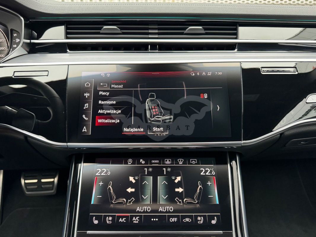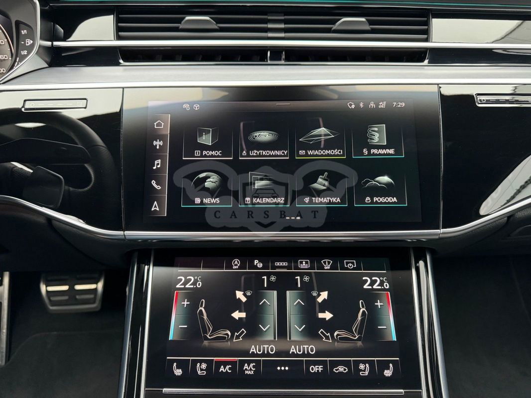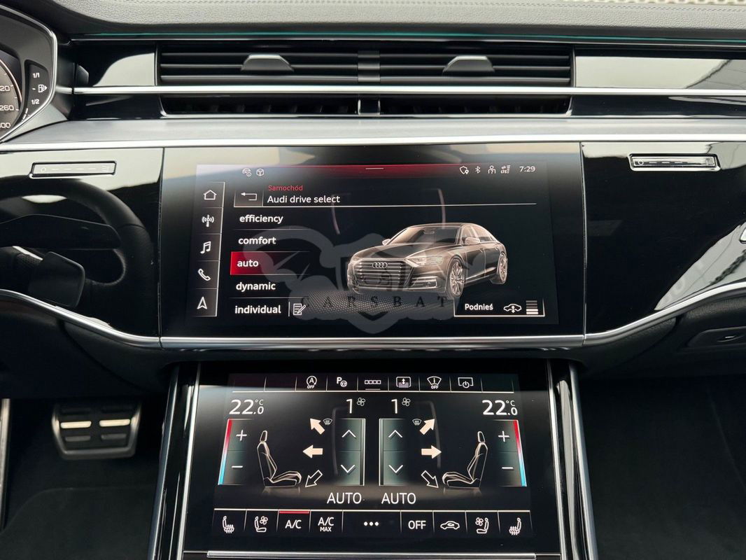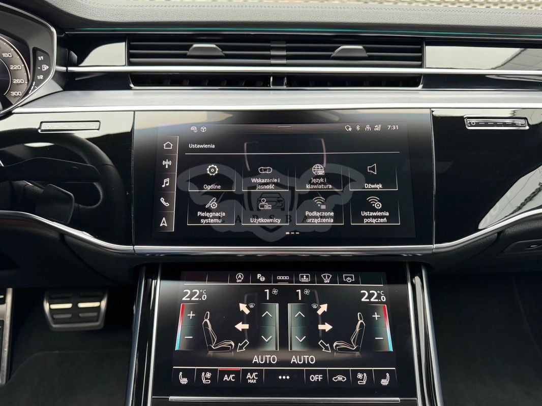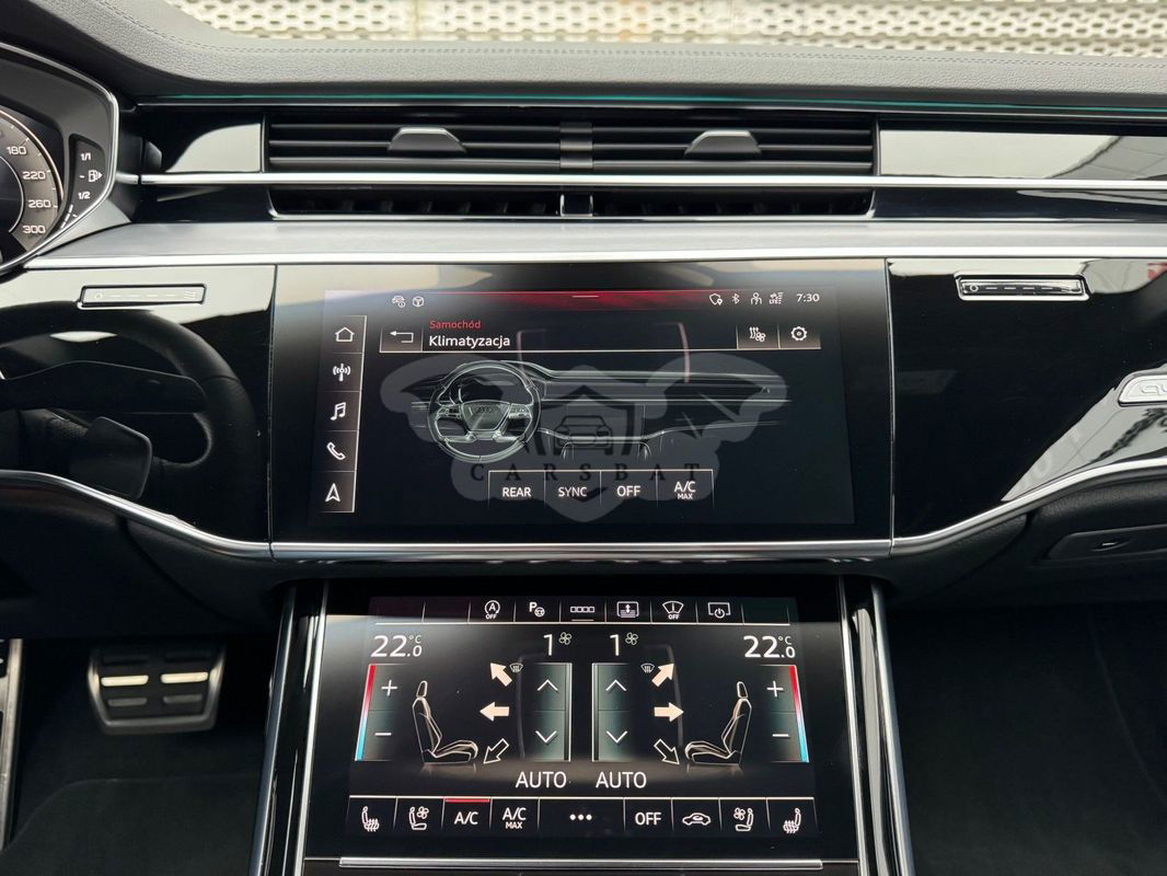 Gwarancja fabryczna producenta do 02.04.2028 / 100 000km Wyposażenie dodatkowe: (9AU) 4-strefowa komfortowa klimatyzacja automatyczna (6I6) Adaptacyjny asystent jazdy z Emergency Assist (8T8) Adaptacyjny tempomat z ogranicznikiem prędkości, asystentem wydajności, (2MA) adaptive air suspension sport (PBY) Assistance package Plus with remote park assist plus (FT1) Asystent parkowania plus (7X5) Asystent parkowania z Audi parking system plus (JX1) Asystent skrzyżowań (7W3) Audi pre sense rear (IU1) Audi smartphone interface (9VS) Bang & Olufsen Premium Sound System z dźwiękiem 3D (QW4) Centralny panel obsługowy z tyłu (PS2) Comfort individual contour seat package in sports look (Q1D)Przednie komfortowe siedzenia konturowe w sportowej stylistyce (6XL)Lusterka zewnętrzne elektrycznie regulowane, ogrzewane i składane, oba lusterkaautomatycznie przyciemniane, z funkcją p (3PR)Przednie siedzenia z elektryczną regulacją, z funkcją pamięci ustawień (N1W)Skóra Valcona pikowana w romby (6E3)Podłokietnik komfortowy z przodu (QU1) Cyfrowy odbiór TV bez systemu C+ PayTV i z cyfrowym odbiorem radiowym (PC1) Czarne zaciski hamulców, 17-calowe (ECE) (2ED)Hamulce tarczowe z tyłu, 17-calowe, czarne zaciski hamulców (ECE) (1LL)Hamulce tarczowe z przodu, 17-calowe, czarne zaciski hamulców (ECE) (9WP) Ekrany w tylnej części kabiny (5TL) Górne aplikacje dekoracyjne pokryte czarnym lakierem fortepianowym (1D3) Hak holowniczy (KA6) Kamery obserwujące otoczenie (1XW) Kierownica wielofunkcyjna, 3-ramienna, z przełącznikami zmiany (46A) Obręcze kół ze stopu metali lekkich Audi Sport 9.0Jx20", 5 - ramienne, (6FJ) Obudowy lusterek w kolorze czarnym (9M9) Ogrzewanie postojowe i wentylacja (4ZP) Pakiet optyczny Czerń z czarnymi pierścieniami Audi (PE6) Pakiet pojedynczych siedzeń z tyłu (7P3)4-kierunkowa regulacja podparcia odcinka lędźwiowego kręgosłupa dla siedzeń przednich i skrajnych siedzeń tylnych (4A4)Ogrzewanie przednich i tylnych siedzeń (3Y8)Rolety przeciwsłoneczne tylnej szyby i szyb bocznych z tyłu z elektryczną regulacją (3Q3)Zagłówki komfortowe z tyłu (5KF)3 miejsca siedzące z tyłu z 2 elektrycznie regulowanymi pojedynczymi fotelami (PQD) Pakiet S line Exterieur (2K7)Zderzaki S line (WQS) Pakiet S line Interieur (VT5)Listwy progowe w przednich drzwiach ze wstawkami z aluminium, podświetlane, z logo S (QQ2)Pakiet oświetlenia Ambiente plus (GS5)Przyciski obsługowe czarne z połyskiem,z haptycznym feedbackiem i pakietem wnętrza w optyce aluminium (GT1)Dolne aplikacje dekoracyjne z ciemnego szczotkowanego aluminium (VF1)Pedały oraz podparcie pod lewą nogę ze stali nierdzewnej (6XL)Lusterka zewnętrzne elektrycznie regulowane, ogrzewane i składane, oba lusterkaautomatycznie przyciemniane, (6NQ) Podsufitka tkaninowa w kolorze czarnym (7G1) Preparation for VTS (vehicle tracking system) (GH2) quattro ze sportowym mechanizmem różnicowym (7Y1) System ostrzegający przy zmianie pasa ruchu z ostrzeżeniem przy (QR9) System rozpoznawania znaków drogowych współpracujący z kamerą (QL5) Szyby z dodatkową powłoką zaciemniającą (PDG) Szyby z izolacją termiczną i akustyczną (4GR)Przednia szyba ze szkła z izolacją termiczną i akustyczną, ogrzewana, bez widocznych drucików (4D2) Wentylacja i funkcja masażu dla przednich i tylnych siedzeń (GZ2) Wspomaganie zamykania drzwi (KS1) Wyświetlacz Head-Up (UE8) Złącza USB z funkcją ładowania w tylnejczęści kabiny W naszym salonie zapewniamy również kompleksową obsługę w zakresie finansowania zakupu samochodu i ubezpieczeń komunikacyjnych. Ponadto oferujemy usługę odkupu samochodów używanych. Skupujemy samochody używane wszystkich klas, segmentów, marek i modeli. Transakcji odkupu dokonujemy z osobami fizycznymi, firmami i instytucjami oraz profesjonalistami branży motoryzacyjnej. Niniejsze ogłoszenie jest wyłącznie informacją handlową i nie stanowi oferty w myśl art. 66, § 1. Kodeksu Cywilnego. Sprzedający nie odpowiada za ewentualne błędy lub nieaktualność ogłoszenia.