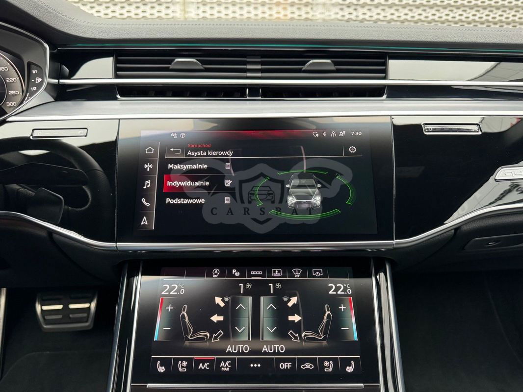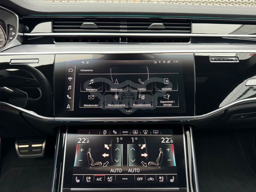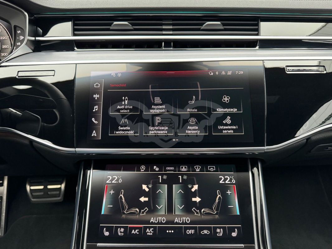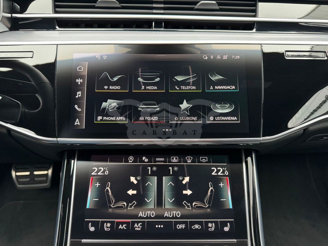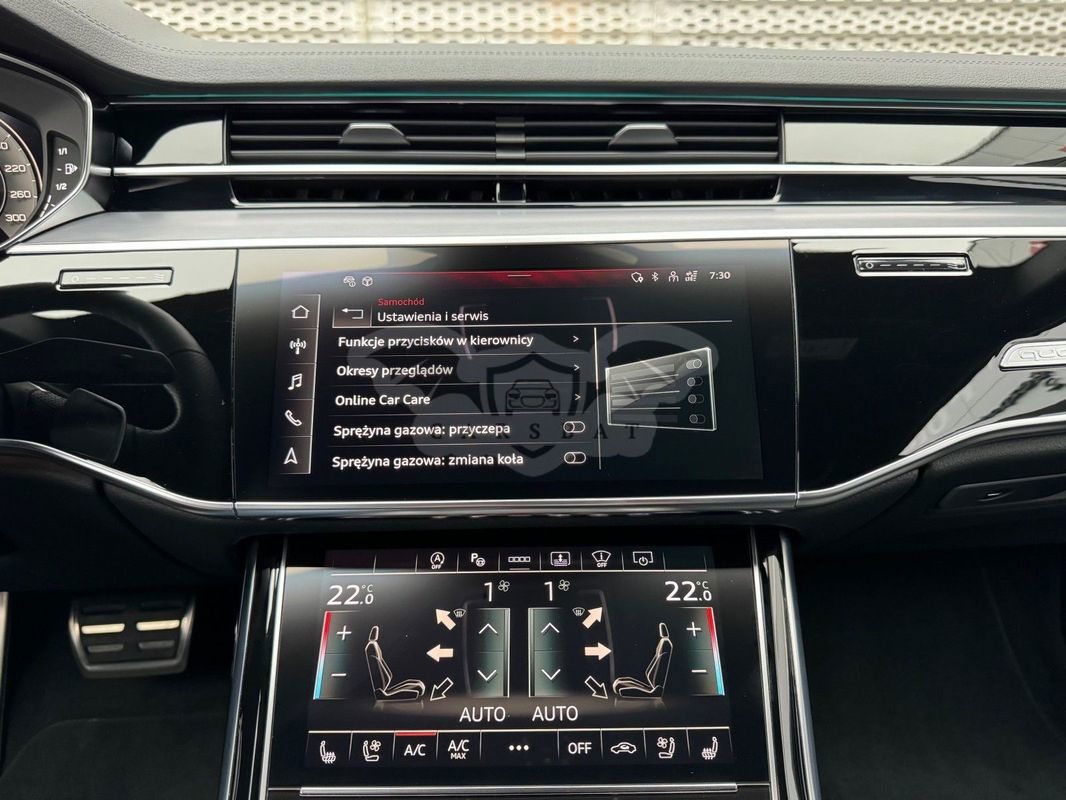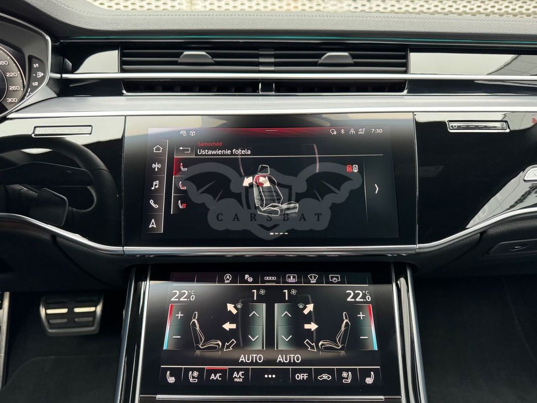 Gwarancja fabryczna producenta do 02.04.2028 / 100 000km Wyposażenie dodatkowe: (9AU) 4-strefowa komfortowa klimatyzacja automatyczna (6I6) Adaptacyjny asystent jazdy z Emergency Assist (8T8) Adaptacyjny tempomat z ogranicznikiem prędkości, asystentem wydajności, (2MA) adaptive air suspension sport (PBY) Assistance package Plus with remote park assist plus (FT1) Asystent parkowania plus (7X5) Asystent parkowania z Audi parking system plus (JX1) Asystent skrzyżowań (7W3) Audi pre sense rear (IU1) Audi smartphone interface (9VS) Bang & Olufsen Premium Sound System z dźwiękiem 3D (QW4) Centralny panel obsługowy z tyłu (PS2) Comfort individual contour seat package in sports look (Q1D)Przednie komfortowe siedzenia konturowe w sportowej stylistyce (6XL)Lusterka zewnętrzne elektrycznie regulowane, ogrzewane i składane, oba lusterkaautomatycznie przyciemniane, z funkcją p (3PR)Przednie siedzenia z elektryczną regulacją, z funkcją pamięci ustawień (N1W)Skóra Valcona pikowana w romby (6E3)Podłokietnik komfortowy z przodu (QU1) Cyfrowy odbiór TV bez systemu C+ PayTV i z cyfrowym odbiorem radiowym (PC1) Czarne zaciski hamulców, 17-calowe (ECE) (2ED)Hamulce tarczowe z tyłu, 17-calowe, czarne zaciski hamulców (ECE) (1LL)Hamulce tarczowe z przodu, 17-calowe, czarne zaciski hamulców (ECE) (9WP) Ekrany w tylnej części kabiny (5TL) Górne aplikacje dekoracyjne pokryte czarnym lakierem fortepianowym (1D3) Hak holowniczy (KA6) Kamery obserwujące otoczenie (1XW) Kierownica wielofunkcyjna, 3-ramienna, z przełącznikami zmiany (46A) Obręcze kół ze stopu metali lekkich Audi Sport 9.0Jx20", 5 - ramienne, (6FJ) Obudowy lusterek w kolorze czarnym (9M9) Ogrzewanie postojowe i wentylacja (4ZP) Pakiet optyczny Czerń z czarnymi pierścieniami Audi (PE6) Pakiet pojedynczych siedzeń z tyłu (7P3)4-kierunkowa regulacja podparcia odcinka lędźwiowego kręgosłupa dla siedzeń przednich i skrajnych siedzeń tylnych (4A4)Ogrzewanie przednich i tylnych siedzeń (3Y8)Rolety przeciwsłoneczne tylnej szyby i szyb bocznych z tyłu z elektryczną regulacją (3Q3)Zagłówki komfortowe z tyłu (5KF)3 miejsca siedzące z tyłu z 2 elektrycznie regulowanymi pojedynczymi fotelami (PQD) Pakiet S line Exterieur (2K7)Zderzaki S line (WQS) Pakiet S line Interieur (VT5)Listwy progowe w przednich drzwiach ze wstawkami z aluminium, podświetlane, z logo S (QQ2)Pakiet oświetlenia Ambiente plus (GS5)Przyciski obsługowe czarne z połyskiem,z haptycznym feedbackiem i pakietem wnętrza w optyce aluminium (GT1)Dolne aplikacje dekoracyjne z ciemnego szczotkowanego aluminium (VF1)Pedały oraz podparcie pod lewą nogę ze stali nierdzewnej (6XL)Lusterka zewnętrzne elektrycznie regulowane, ogrzewane i składane, oba lusterkaautomatycznie przyciemniane, (6NQ) Podsufitka tkaninowa w kolorze czarnym (7G1) Preparation for VTS (vehicle tracking system) (GH2) quattro ze sportowym mechanizmem różnicowym (7Y1) System ostrzegający przy zmianie pasa ruchu z ostrzeżeniem przy (QR9) System rozpoznawania znaków drogowych współpracujący z kamerą (QL5) Szyby z dodatkową powłoką zaciemniającą (PDG) Szyby z izolacją termiczną i akustyczną (4GR)Przednia szyba ze szkła z izolacją termiczną i akustyczną, ogrzewana, bez widocznych drucików (4D2) Wentylacja i funkcja masażu dla przednich i tylnych siedzeń (GZ2) Wspomaganie zamykania drzwi (KS1) Wyświetlacz Head-Up (UE8) Złącza USB z funkcją ładowania w tylnejczęści kabiny W naszym salonie zapewniamy również kompleksową obsługę w zakresie finansowania zakupu samochodu i ubezpieczeń komunikacyjnych. Ponadto oferujemy usługę odkupu samochodów używanych. Skupujemy samochody używane wszystkich klas, segmentów, marek i modeli. Transakcji odkupu dokonujemy z osobami fizycznymi, firmami i instytucjami oraz profesjonalistami branży motoryzacyjnej. Niniejsze ogłoszenie jest wyłącznie informacją handlową i nie stanowi oferty w myśl art. 66, § 1. Kodeksu Cywilnego. Sprzedający nie odpowiada za ewentualne błędy lub nieaktualność ogłoszenia.