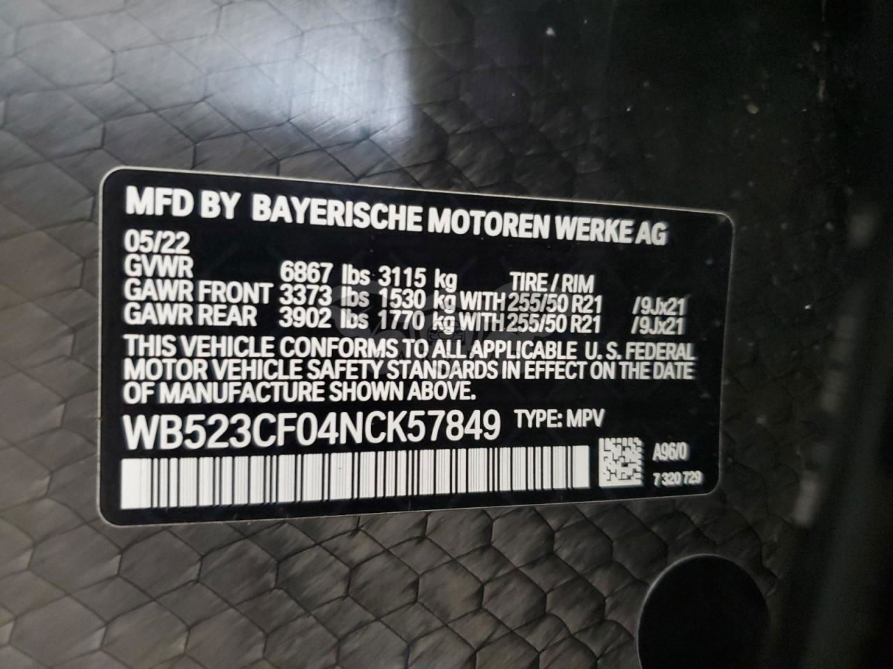 • VIN: WB523CF04NCK57849