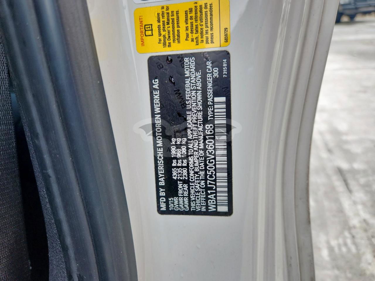 • VIN: WBA1J7C50GV360168