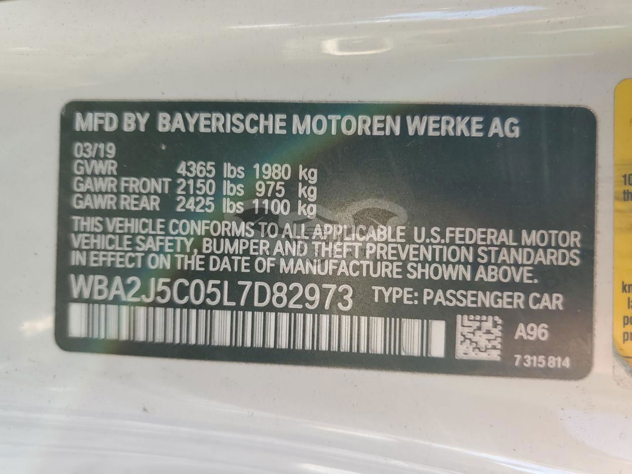 • VIN: WBA2J5C05L7D82973