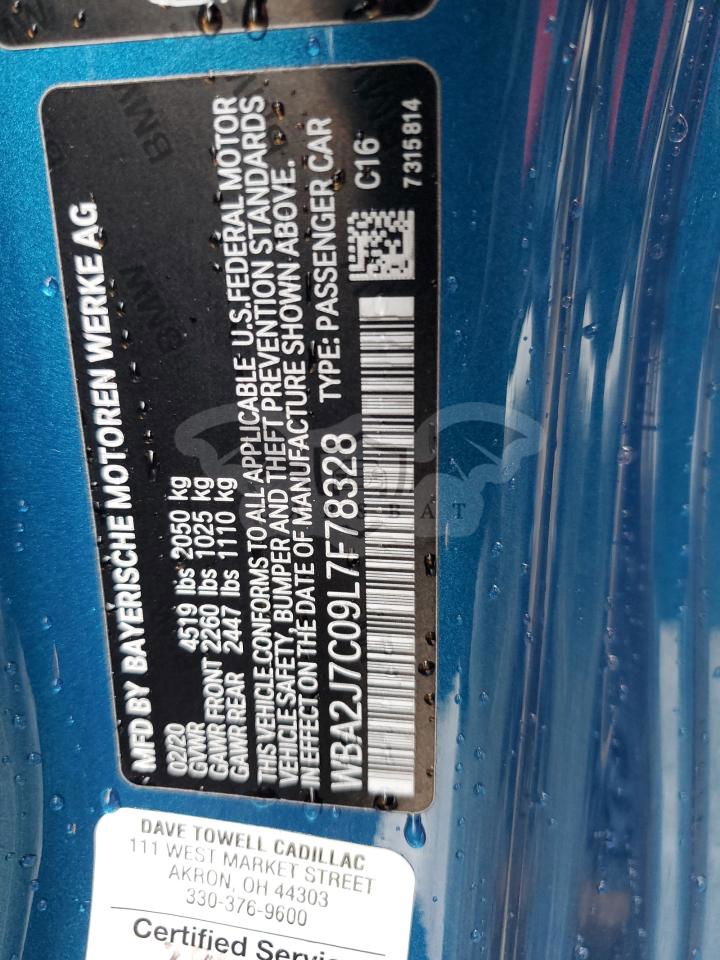 • VIN: WBA2J7C09L7F78328