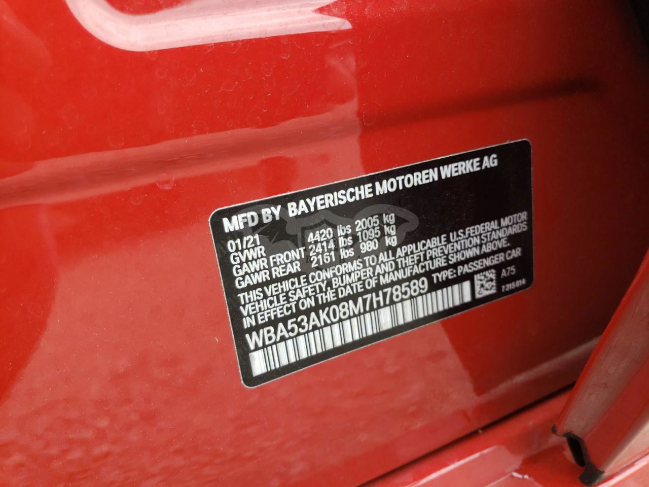 • VIN: WBA53AK08M7H78589