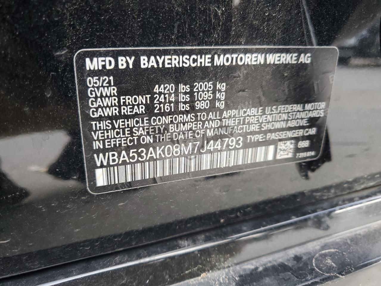 • VIN: WBA53AK08M7J44793
