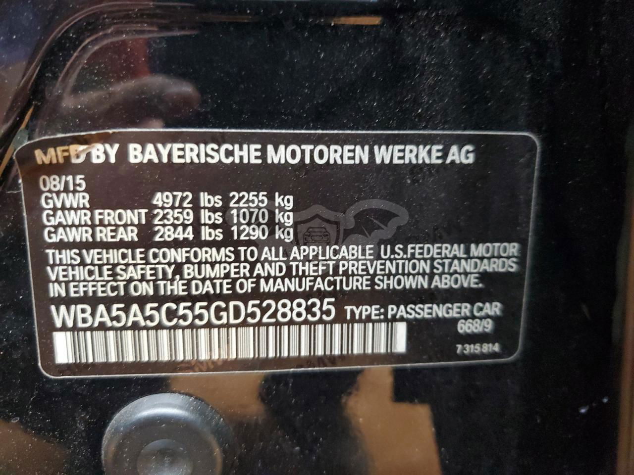 • VIN: WBA5A5C55GD528835