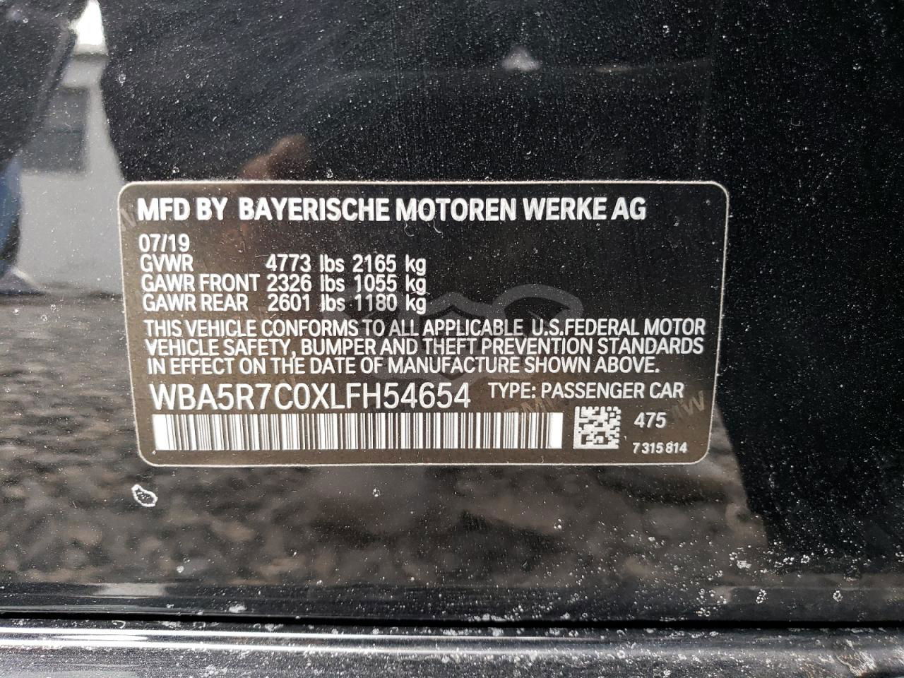 • VIN: WBA5R7C0XLFH54654