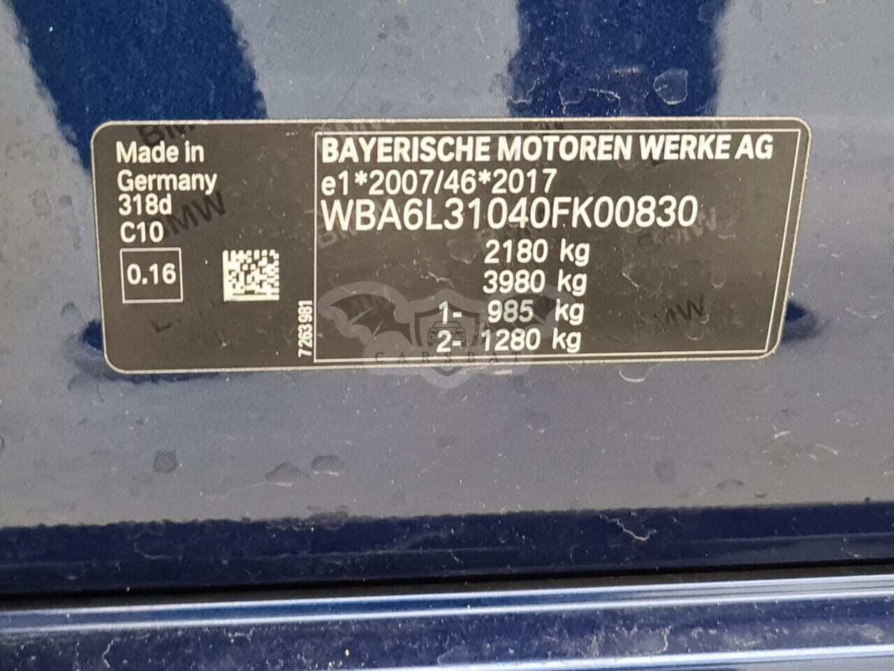 • VIN: WBA6L31040FK00830