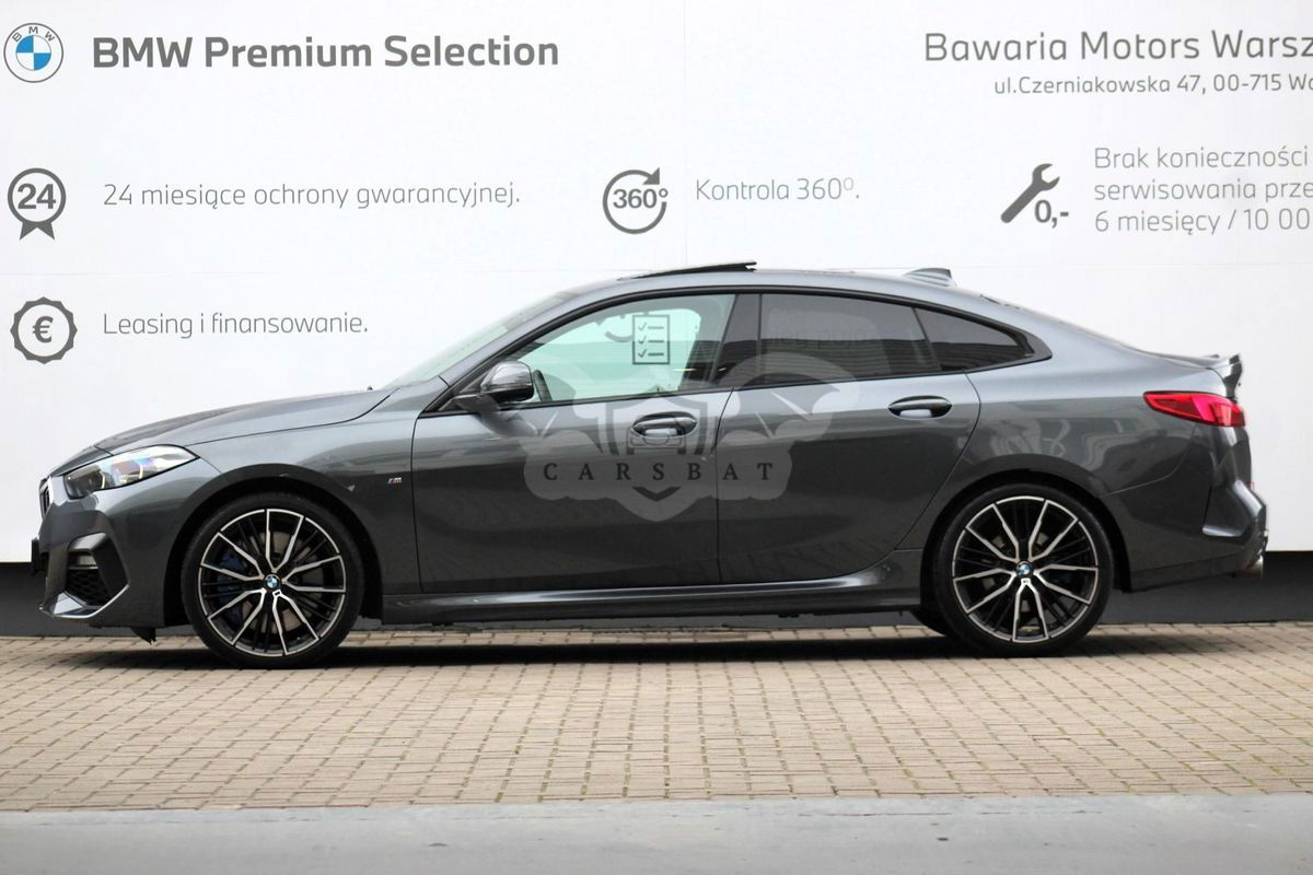 Dealer Bawaria Motors Warszawa serdecznie zaprasza do zapoznania się z ofertą: BMW 220d xDrive Silnik: 2.0 diesel 190 KM, skrzynia automatyczna, napęd 4x4 xDrive. Numer oferty: 7J45875 Miejsce ekspozycji: Dealer BMW i MINI Bawaria Motors Warszawa - ul. Czerniakowska 47 - faktura VAT 23% - bezwypadkowy - 1 rejestracja 25.11.2021 - cena samochodu nowego 231.900 PLN brutto - GWARANCJA BMW Premium Selection - 24 MIESIĄCE Lakier: B39 Mineral Grey Tapicerka: HLSW Alcantara Black / Trigon Listwy: 4P2Illuminated Boston Wyposażenie: 1AG Zbiornik paliwa o większej pojemności 205Automatyczna skrzynia biegów 249Kierownica wielofunkcyjna 2NH Hamulce sportowe M 2PAŚruby zabezpieczające 2VBCzujnik ciśnienia powietrza w oponach 2VCZestaw naprawczy opony 2VEKierownica sportowa M 302Alarm 313Pakiet lusterek zewnętrznych 322Dostęp komfortowy 402Szklany dach panoramiczny 420Szyby przeciwsłoneczne 423Dywaniki welurowe 428Trójkąt i apteczka 459Elektryczna regulacja foteli przednich z pamięcią ustawień fotela kierowcy 478Mocowanie fotelika dla dzieci 493Pakiet dodatkowych schowków 4GQ Pasy bezpieczeństwa z przeszyciami M 552Reflektory adaptacyjne LED 563Pakiet dodatkowego oświetlenia 5A1Diodowe światła przeciwmgielne 5ACAsystent świateł drogowych 5DFTempomat aktywny z funkcją Stop&Go 5DM Park Assistant 610Wyświetlacz Head-Up 654Tuner DAB do odbioru cyfrowych stacji radiowych 688Zestaw Harman/Kardon Surround Sound System z 11 głośnikami 6AETeleservices 6AFPołączenie alarmowe 6AKConnectedDrive Services (Usługi ConnectedDrive) 6C3Pakiet Connected Professional 6NW Telefonia komórkowa z ładowaniem bezprzewodowym 6U3BMW Live Cockpit Professional 704Sportowe zawieszenie M 710Kierownica sportowa skórzana M 711Fotele sportowe M 715Pakiet aerodynamiczny M 754Spoiler tylny M 760Obramowania Individual Shadow Line, na wysoki połysk 775Podsufitka antracytowa Individual 7LFEdycja M Sport Zapraszamy do naszego autoryzowanego salonu BMW i MINI. Telefon 22 55 00 362 Bawaria Motors to największy dealer marki BMW i MINI w Polsce, który od lat cieszy się uznaniem klientów dzięki najwyższej jakości usługom. Jako część Grupy Emil Frey, jednej z największych firm motoryzacyjnych na świecie, zapewniamy dostęp do najlepszych i najnowocześniejszych rozwiązań w branży. Posiadamy pięć salonów rozlokowanych w całej Polsce: w Warszawie, Jankach, Piasecznie, Katowicach i Gdańsku, gdzie oferujemy nie tylko nowe i używane pojazdy marki BMW i MINI, ale również usługi serwisowe, blacharsko-lakiernicze oraz sklep z akcesoriami i częściami zamiennymi. Nasz zespół specjalistów jest zawsze gotowy, aby sprostać wymaganiom i potrzebom naszych klientów. W Bawaria Motors kładziemy nacisk na najwyższą jakość obsługi i usług, aby zapewnić naszym klientom pełne zadowolenie z zakupów oraz serwisu. Nasze wieloletnie doświadczenie na rynku motoryzacyjnym oraz wykorzystanie najnowszych technologii gwarantują najwyższą jakość i niezawodność usług. Pragniemy, aby nasze salony były miejscem, gdzie klienci czują się mile widziani i zawsze mogą liczyć na profesjonalną obsługę. Niniejsze ogłoszenie jest wyłącznie informacją handlową i nie stanowi oferty w myśl art. 66, § 1. Kodeksu Cywilnego. Sprzedający nie odpowiada za ewentualne błędy lub nieaktualność ogłoszenia.