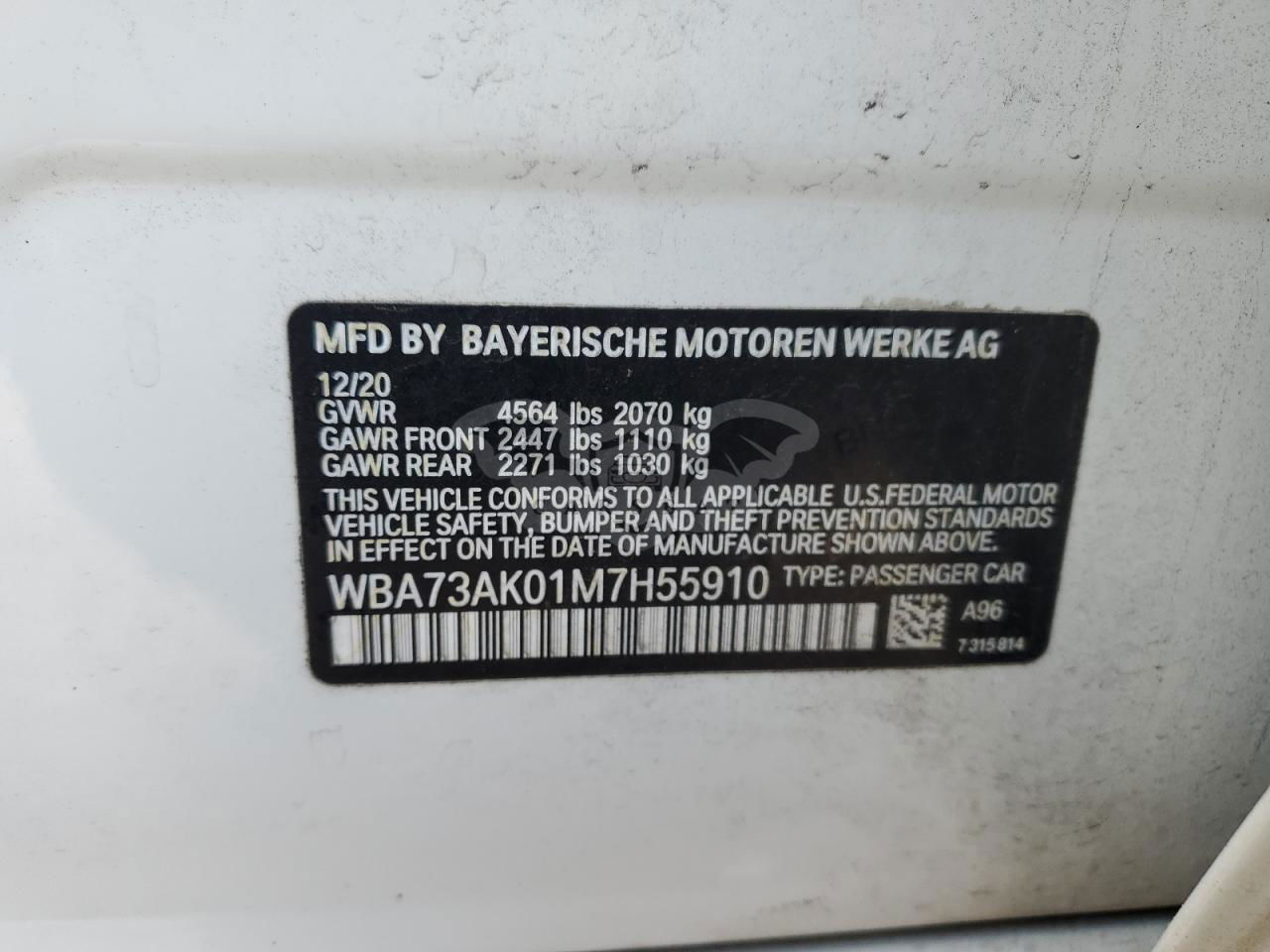 • VIN: WBA73AK01M7H55910