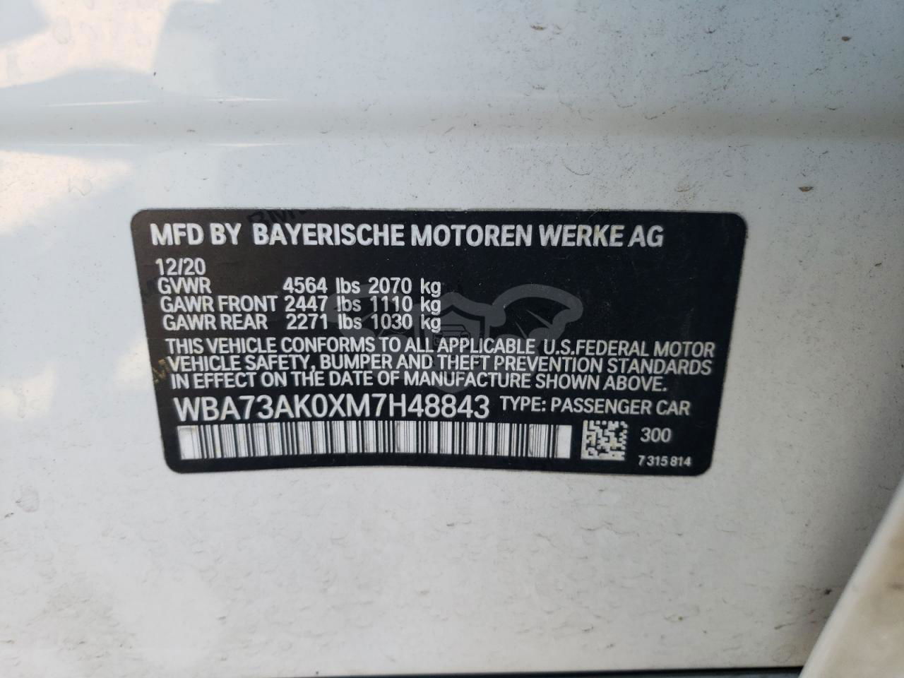 • VIN: WBA73AK0XM7H48843