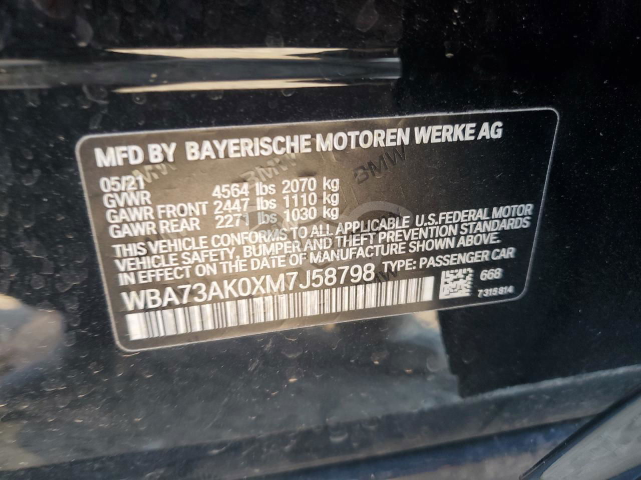 • VIN: WBA73AK0XM7J58798