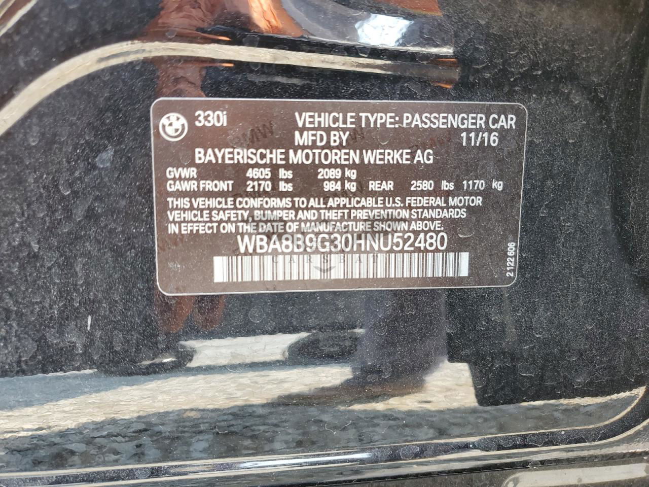 • VIN: WBA8B9G30HNU52480
