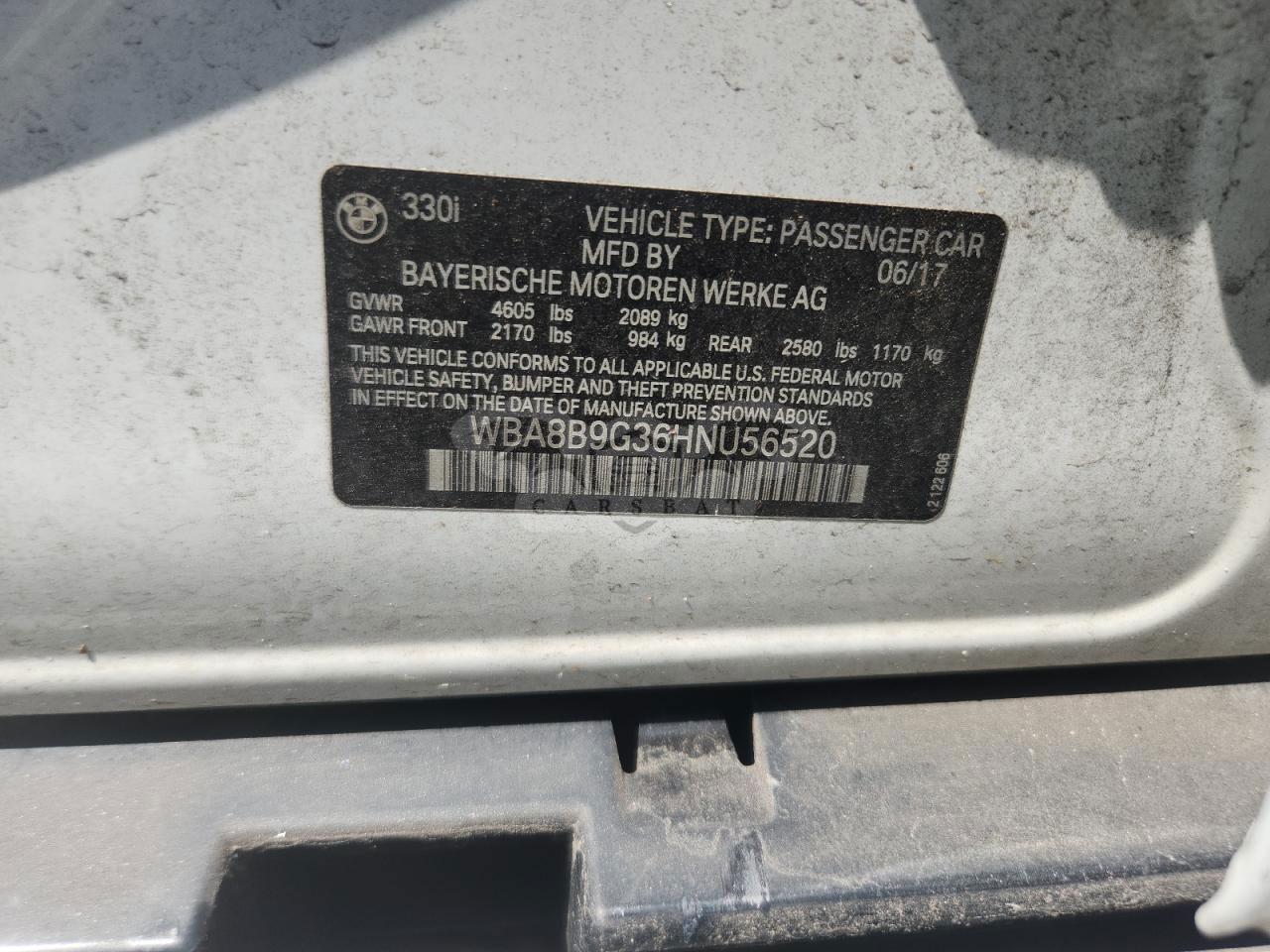 • VIN: WBA8B9G36HNU56520