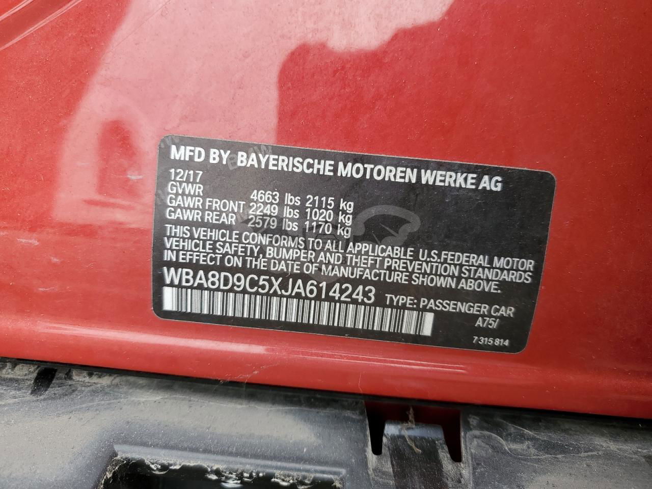 • VIN: WBA8D9C5XJA614243