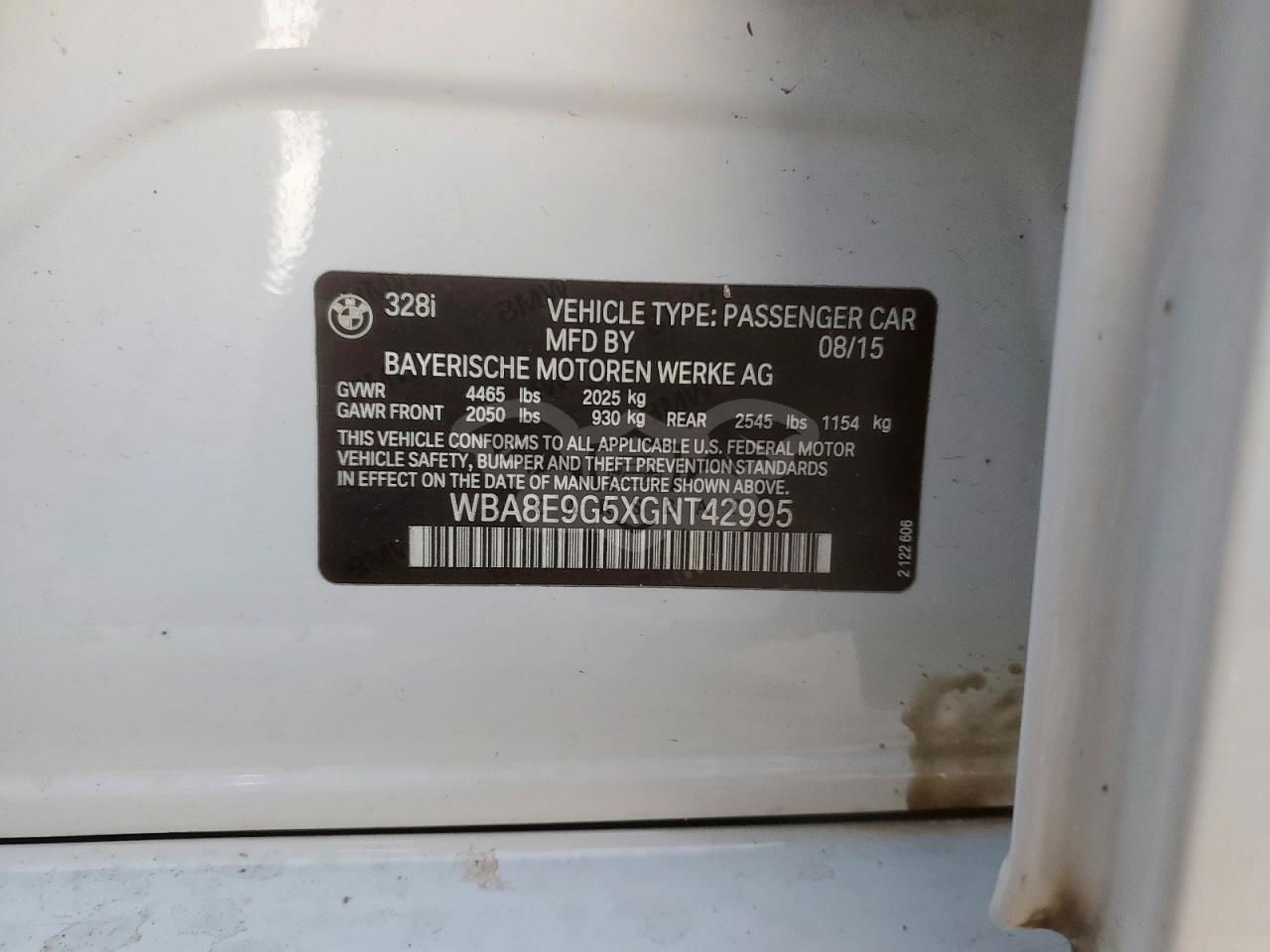 • VIN: WBA8E9G5XGNT42995
