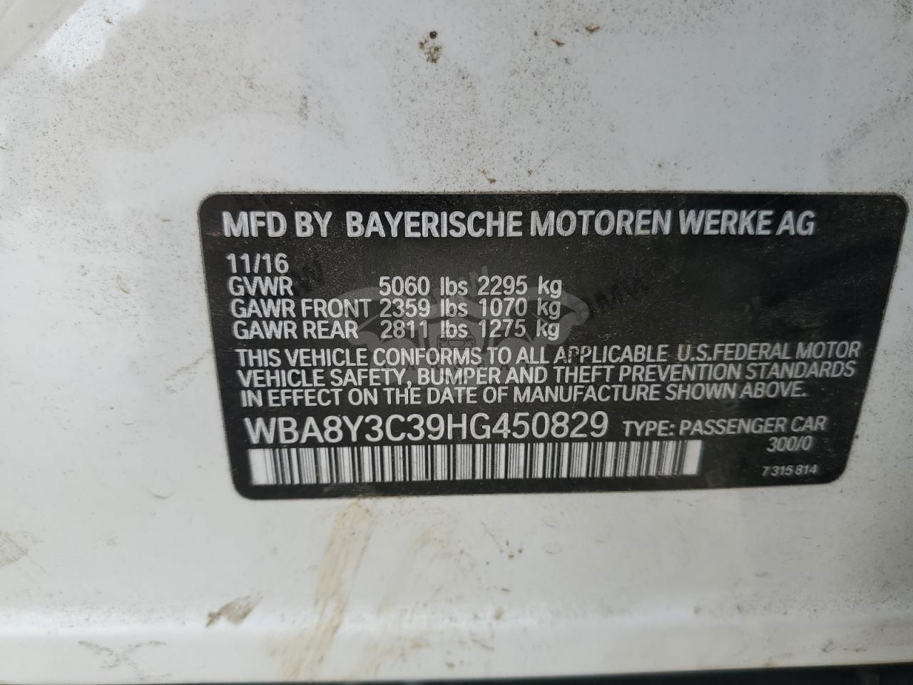 • VIN: WBA8Y3C39HG450829