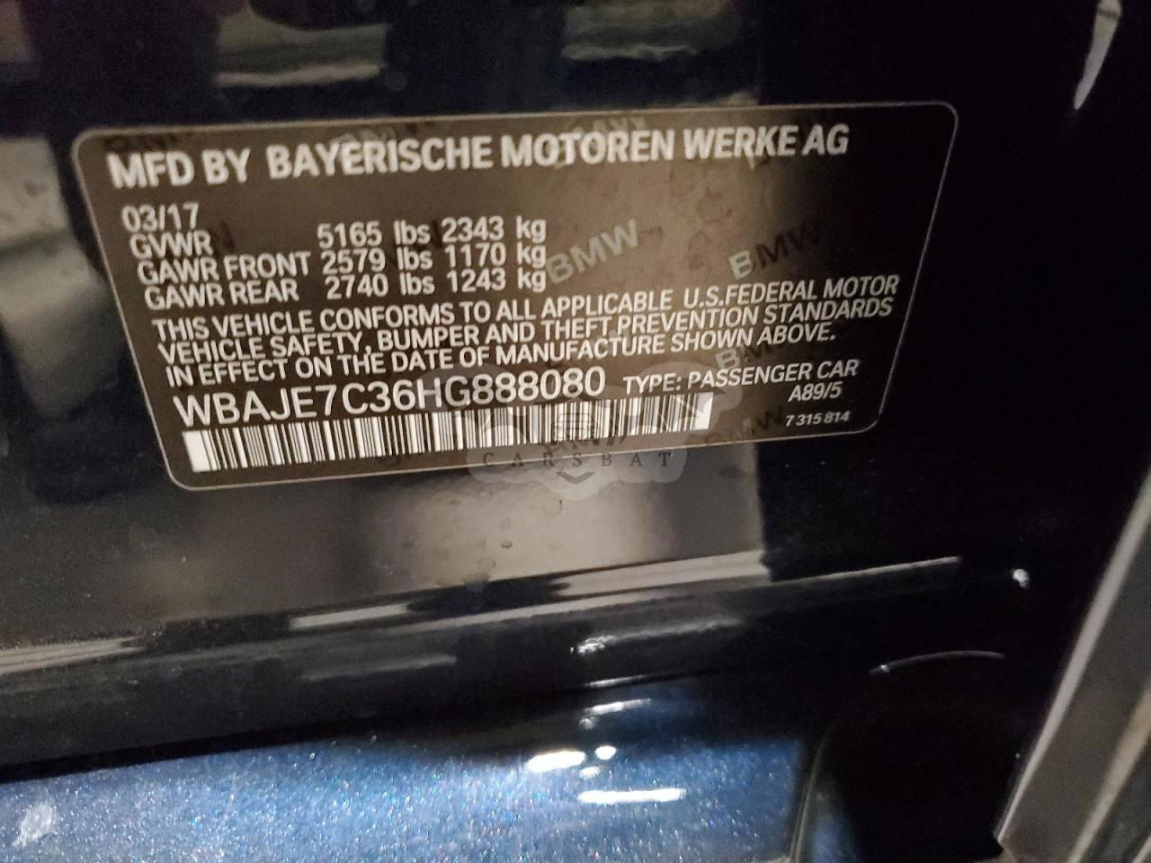 • VIN: WBAJE7C36HG888080