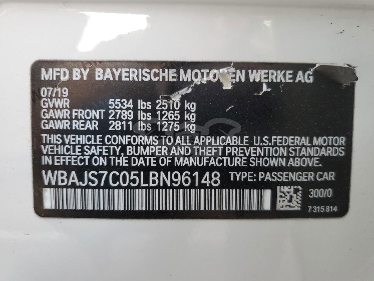 • VIN: WBAJS7C05LBN96148