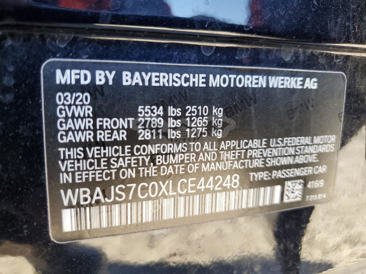 • VIN: WBAJS7C0XLCE44248
