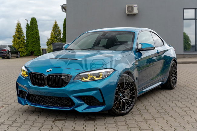 Niebieski BMW M2 Competition DKG 2020 roku | Benzyna