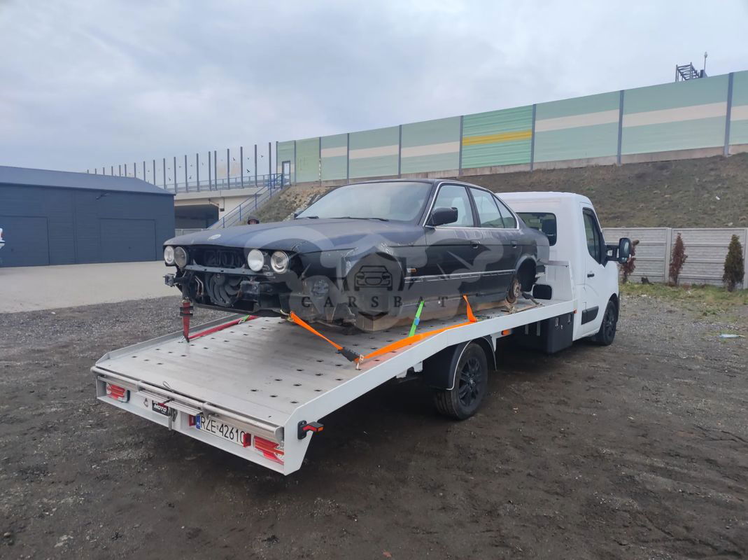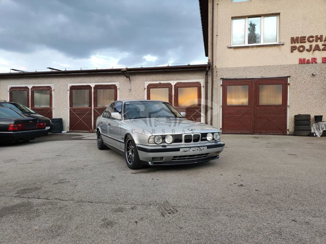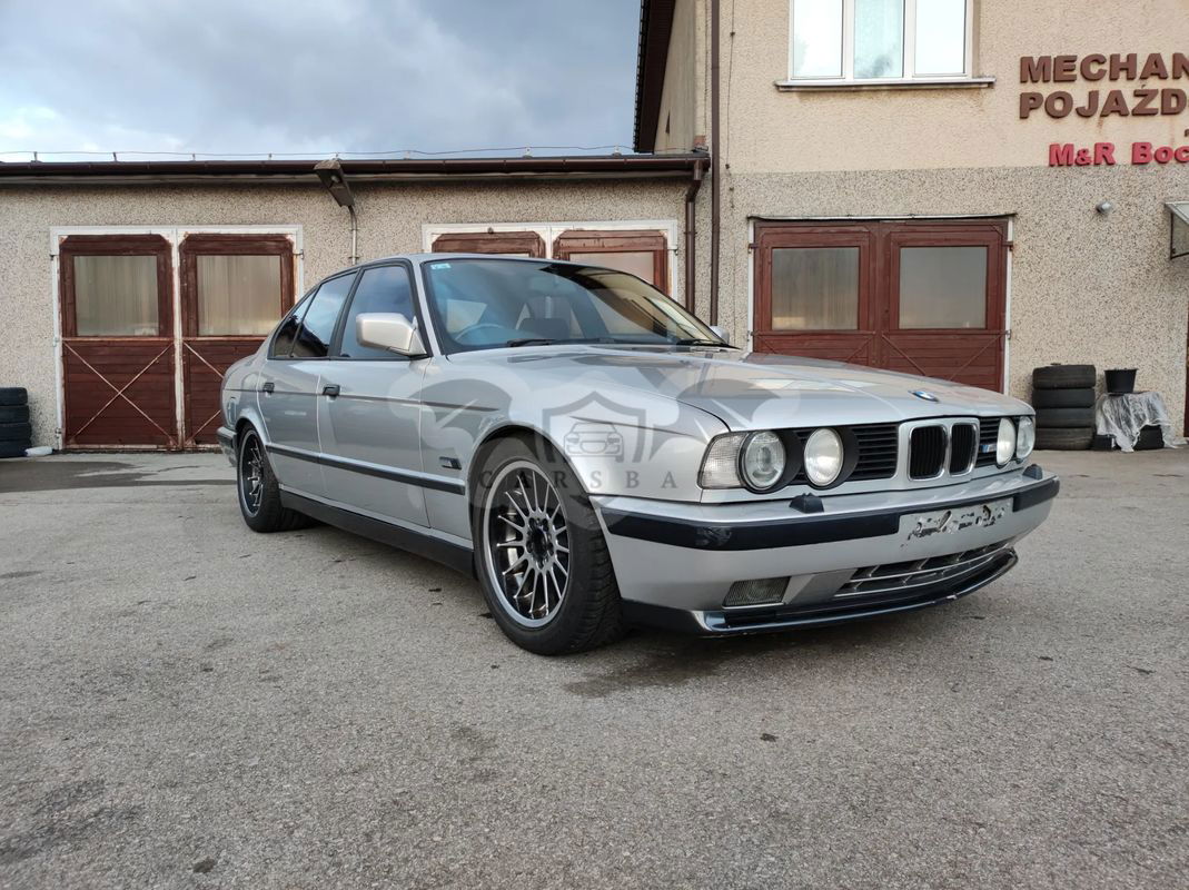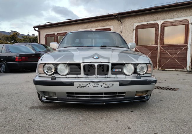 Przedstawiamy Państwu BMW M5 e34 w wersji przedliftowej z silnikiem 3.5L o mocy 315KM z 1991 roku. Samochód sprowadzony z UK, wersja angielska. Przebieg M5 wynosi 122 000 mil i wygląda na oryginalny. Blacharsko bardzo dobry stan zachowania, super baza wyjściowa do zrobienia idealnego M5. Jednak aby była idealna wymaga odświeżenia powłoki lakierniczej. Mechanicznie samochód jest sprawny, odpala jeździ o własnych siłach, jednak podobnie jak w przypadku wizualnym w najbliższym czasie będzie wymagał przeglądu niektórych podzespołów. Bardzo zdrowy motor, zmierzone ciśnienie na cylindrach – wszystko w jak najlepszym porządku. Ładnie zachowane i rzadko spotykane wnętrze. Samochód posiada komplet dokumentów potrzebnych do rejestracji w PL na białe tablice. Istnieje także zarejestrowania na żółte – zabytkowe tablice – możemy pomóc w tym poważnie zainteresowanemu klientowi. Jeśli ktoś byłby zainteresowany przekładką posiadamy też karoserię z M5 Europa (VIN WBS91..) wraz z elementami potrzebnymi do przekładki (deska, przekładnia kierownicza, instalacja itp.) Karoseria jest w dobrym stanie blacharskim więc istnieje możliwość przełożenia podzespołów i posiadania M5 Europa. Cena nie obejmuje kół widocznych na zdjęciach, ale na odbiór założymy jakiś komplet. Sprzedajemy samochód ze względu na zaangażowanie się w bardzo duży projekt budowy innego samochodu, a co za tym idzie brak czasu i miejsca na ogarnięcie M5. Więcej informacji chętnie udzielimy telefonicznie. Zapraszamy do kontaktu i na jazdę próbną.