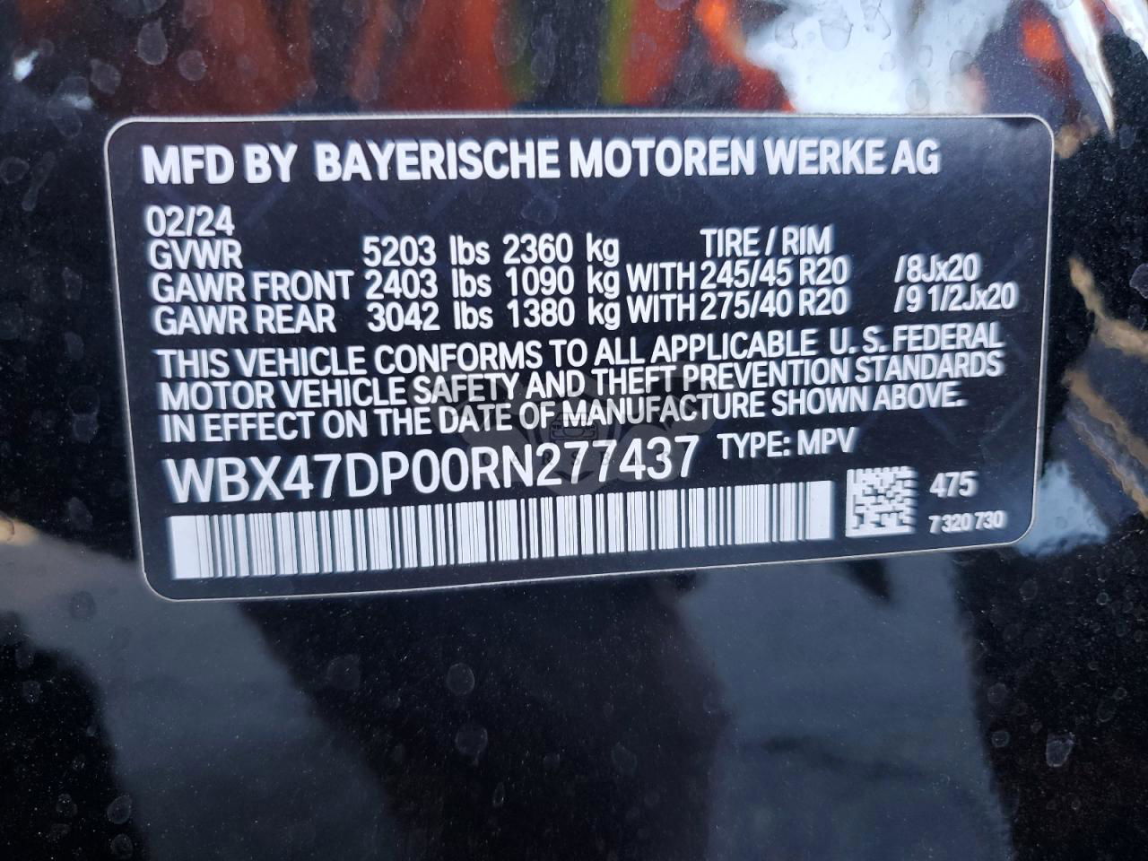 • VIN: WBX47DP00RN277437