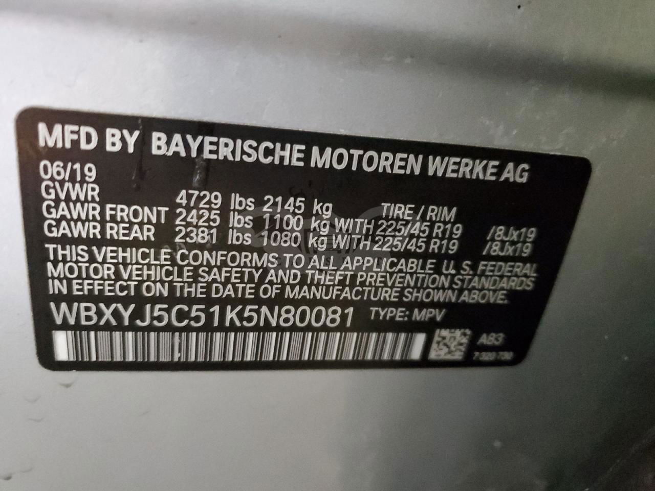 • VIN: WBXYJ5C51K5N80081