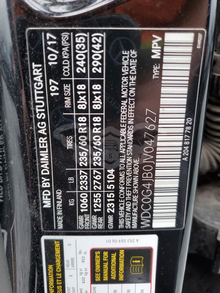 • VIN: WDC0G4JB0JV047627